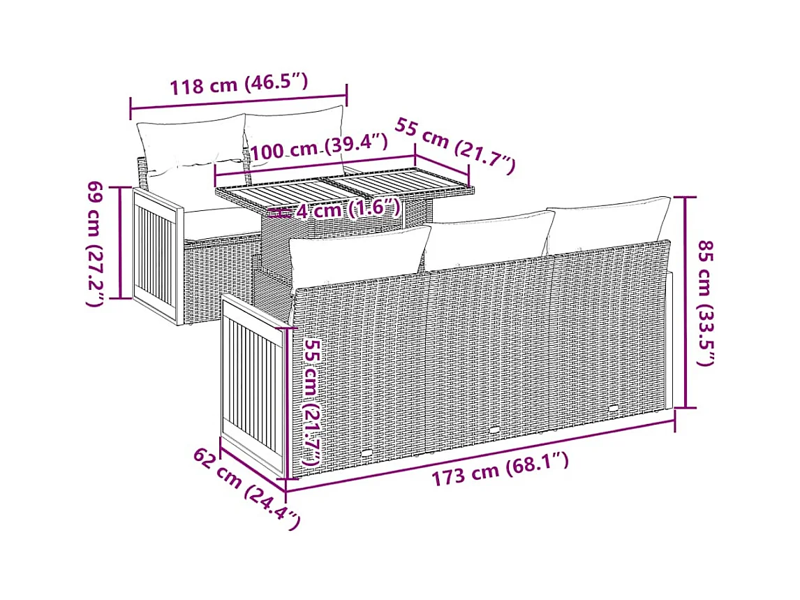 Set Divano da Giardino 6 pz con Cuscini Nero Polyrattan Acacia