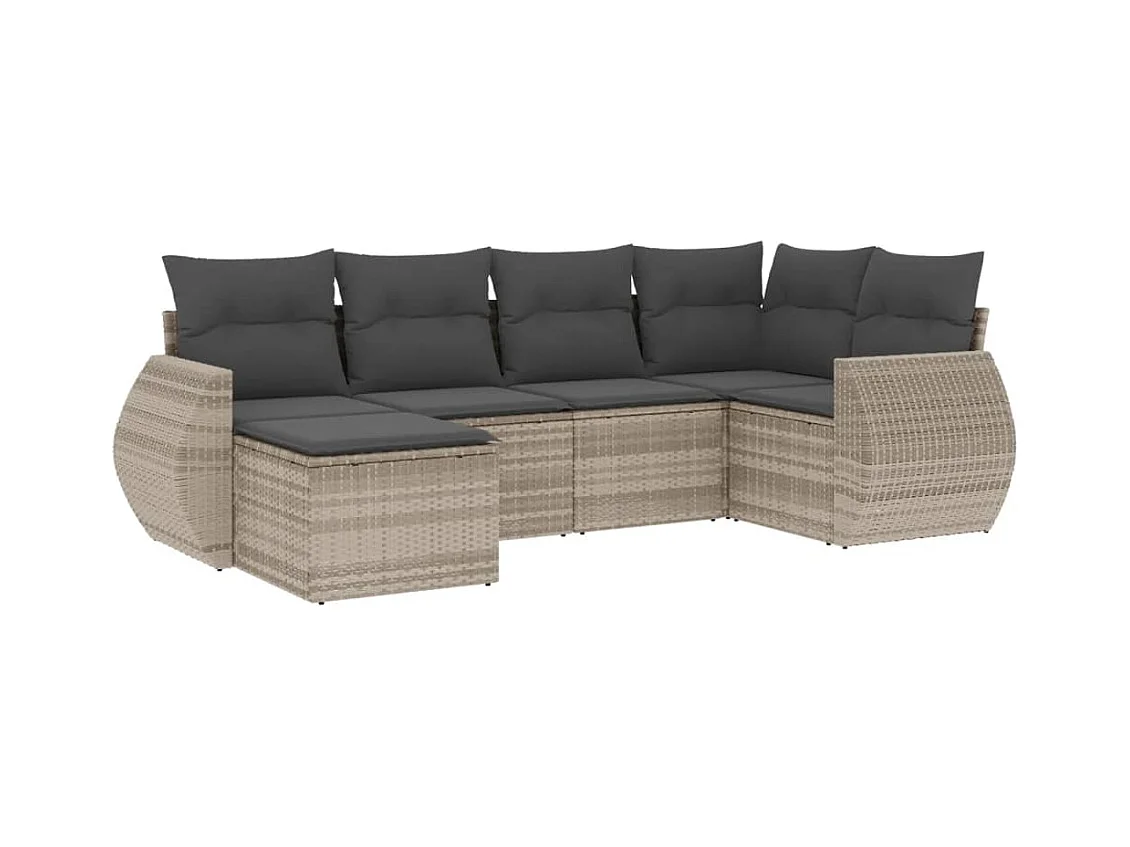 Mobili da giardino 6 pezzi con cuscini in resina intrecciata grigio chiaro