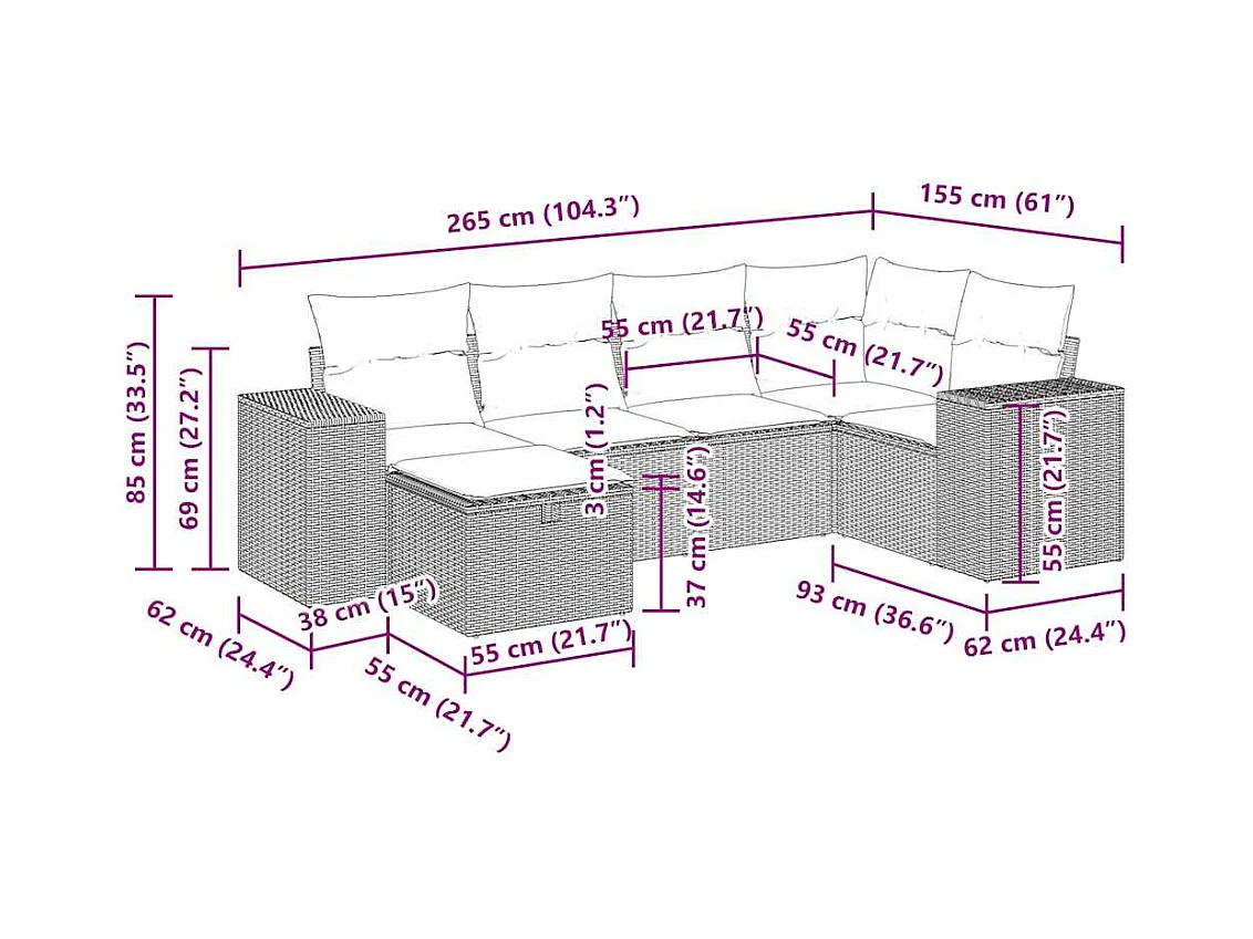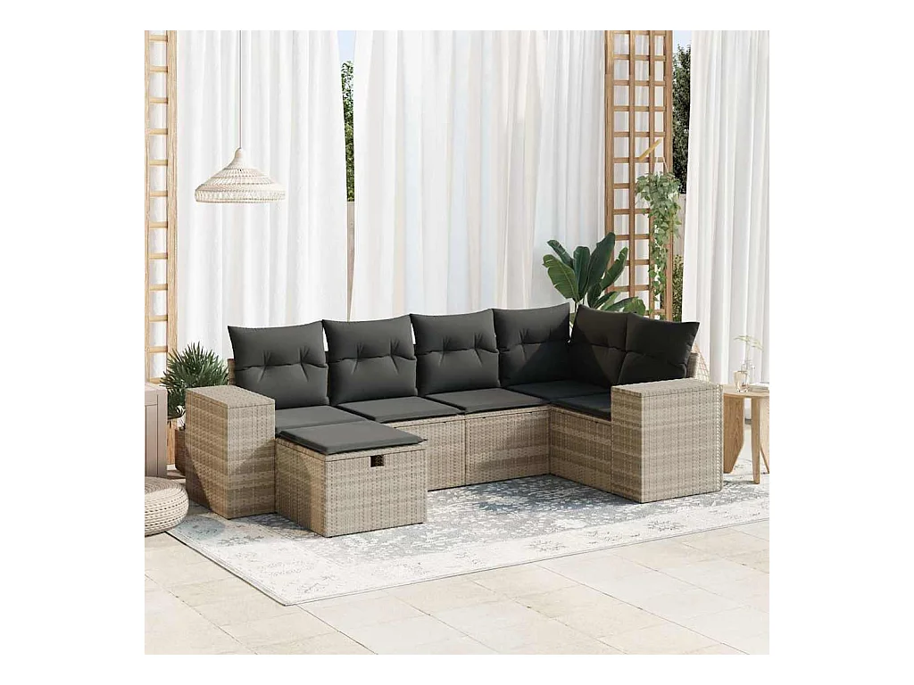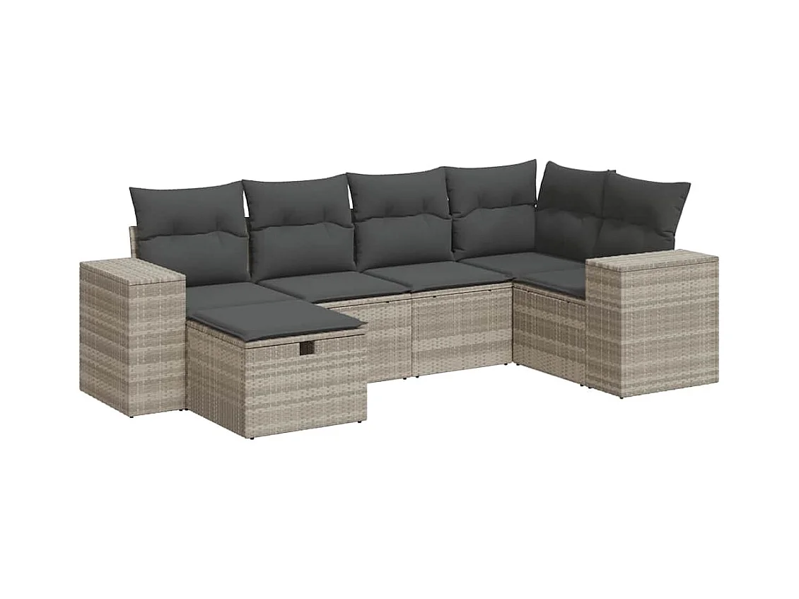 Set Divano da Giardino 6pz con Cuscini Grigio Chiaro Polyrattan