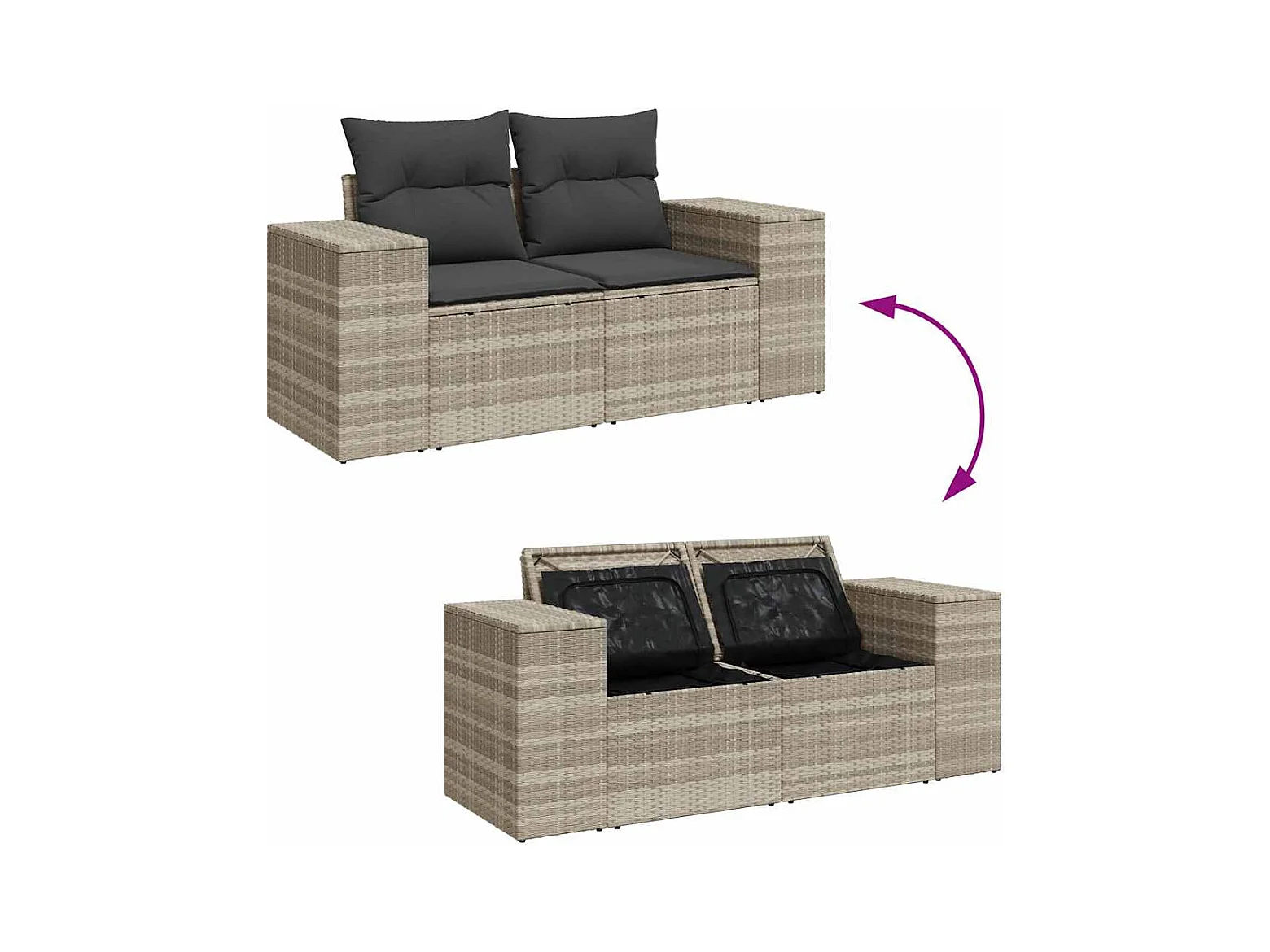 Set Divani da Giardino 7pz con Cuscini Grigio Chiaro Polyrattan