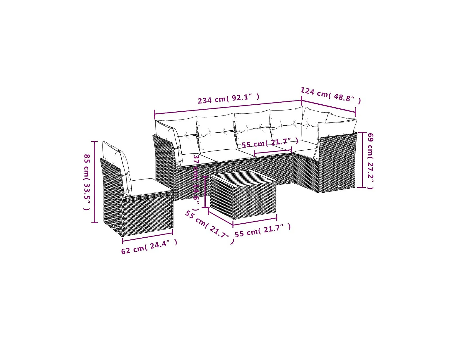 Set Divano da Giardino 7 pz con Cuscini Beige Misto Polyrattan
