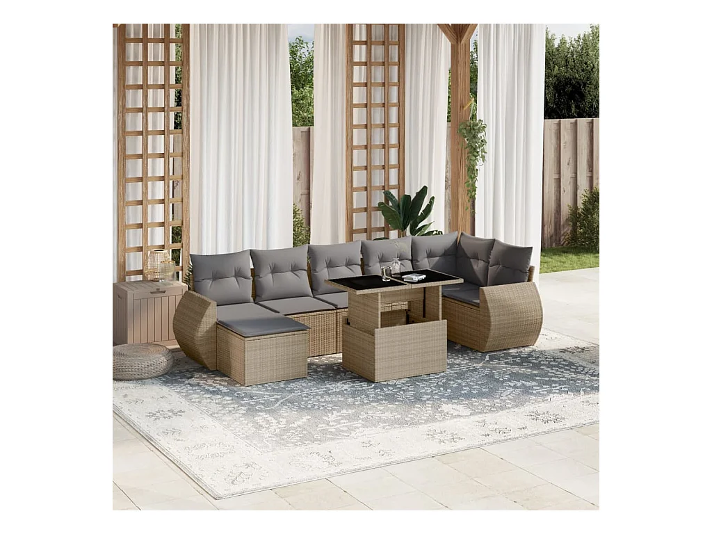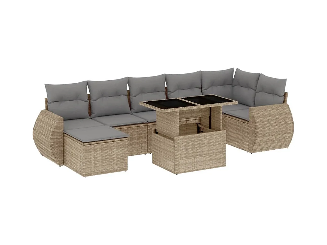 Set Divano da Giardino 8 pz con Cuscini Beige in Polyrattan