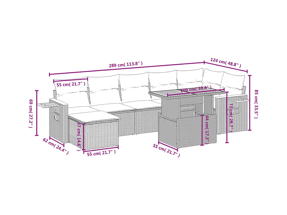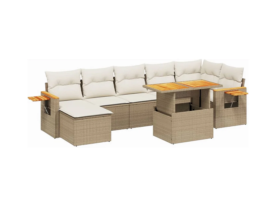 Set Divano da Giardino 8 pz con Cuscini Beige in Polyrattan