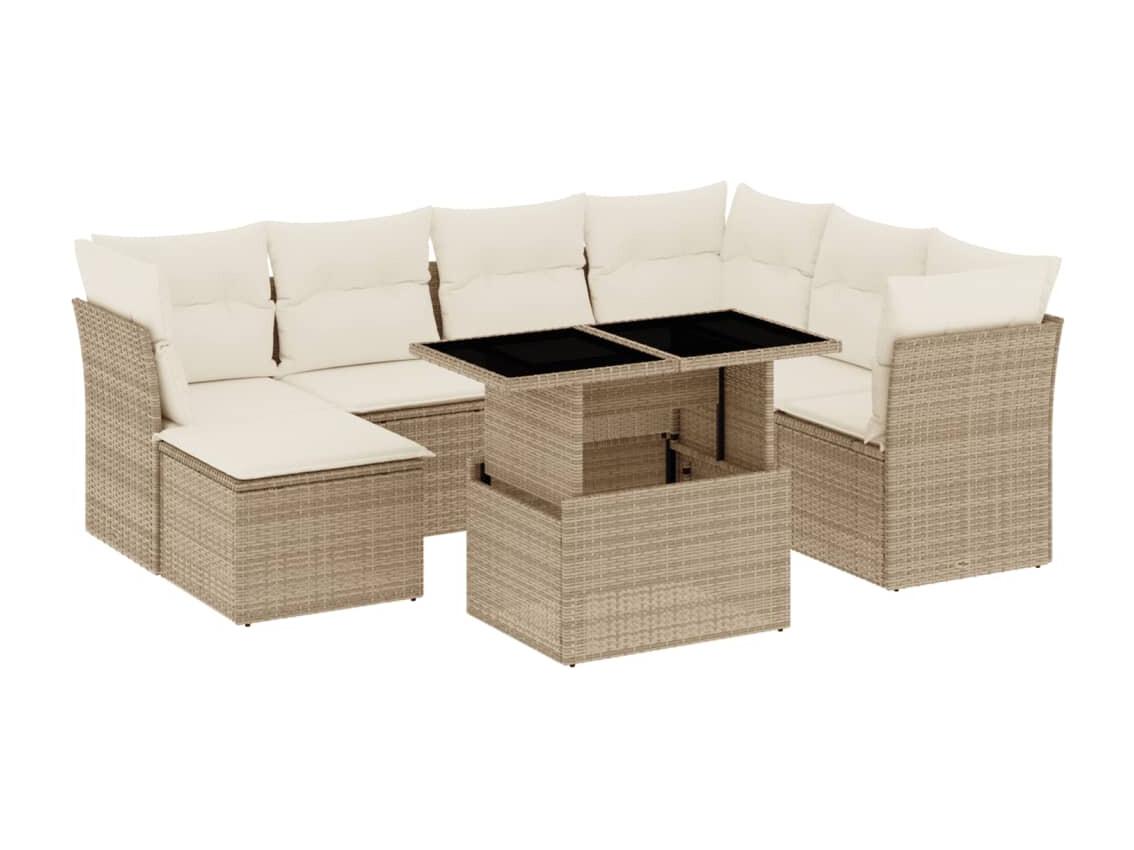 Set Divano da Giardino 8 pz con Cuscini Beige in Polyrattan
