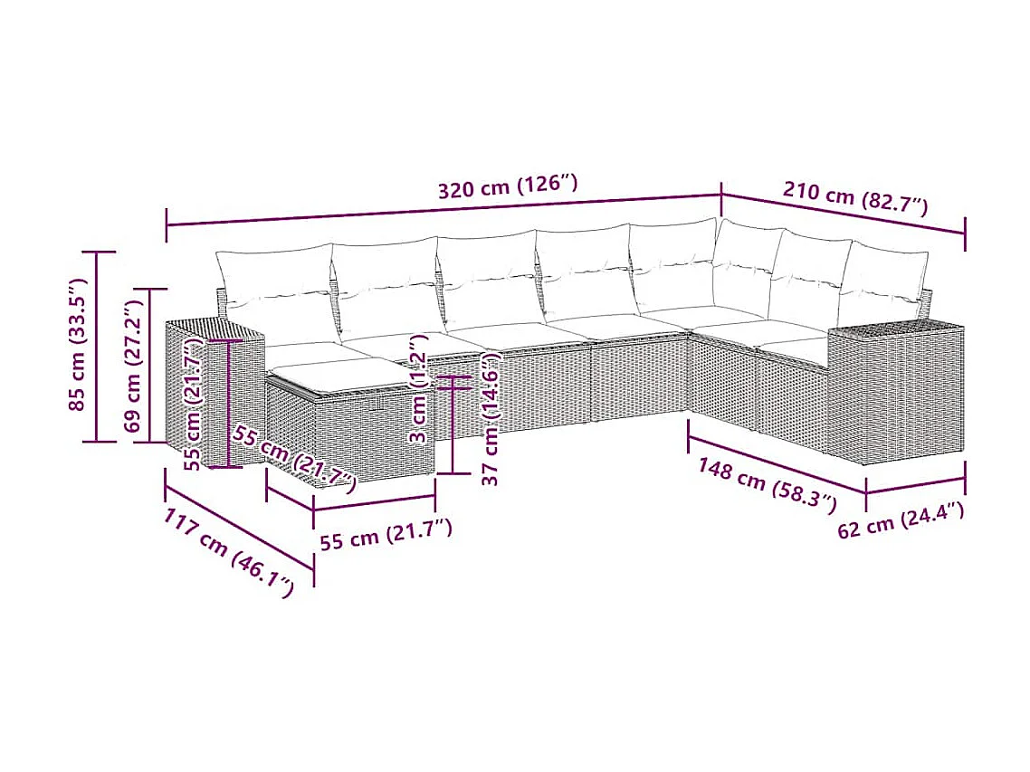 Set Divano da Giardino 8 pz con Cuscini Beige in Polyrattan