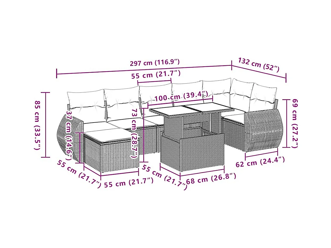 Set Divano da Giardino 8 pz con Cuscini Beige in Polyrattan