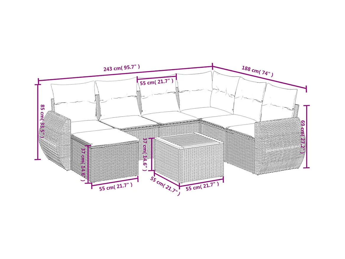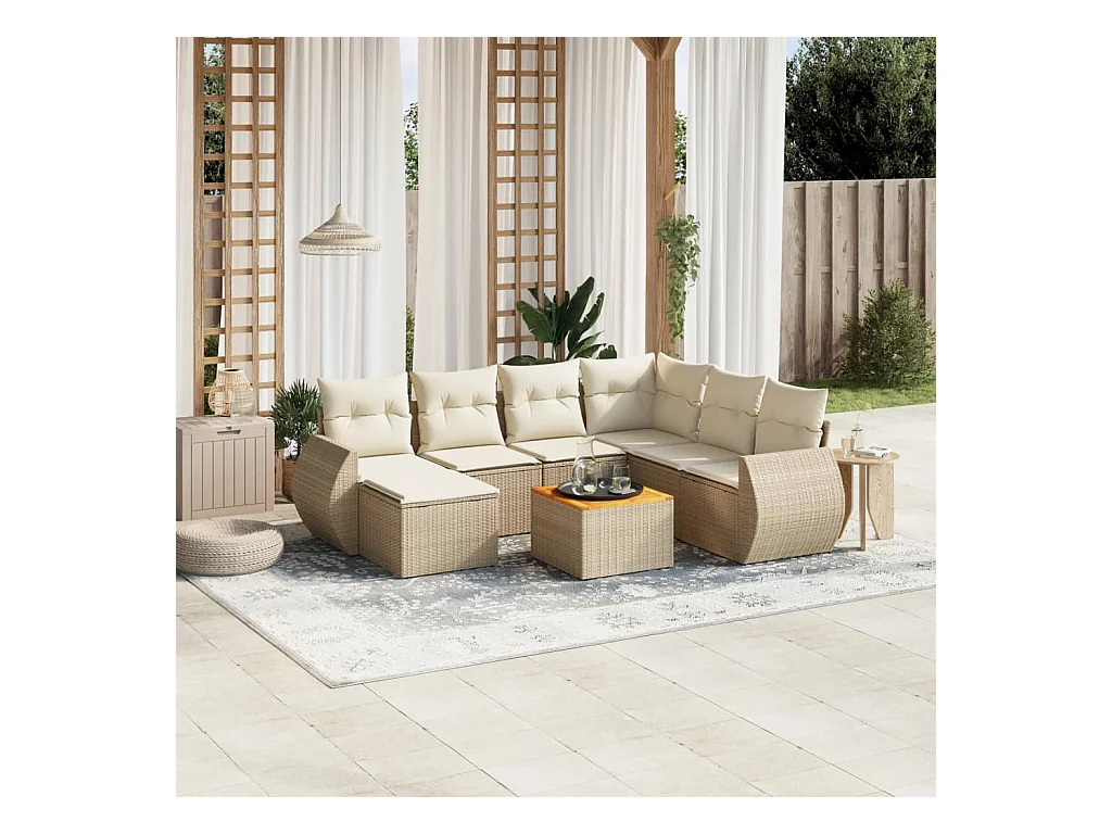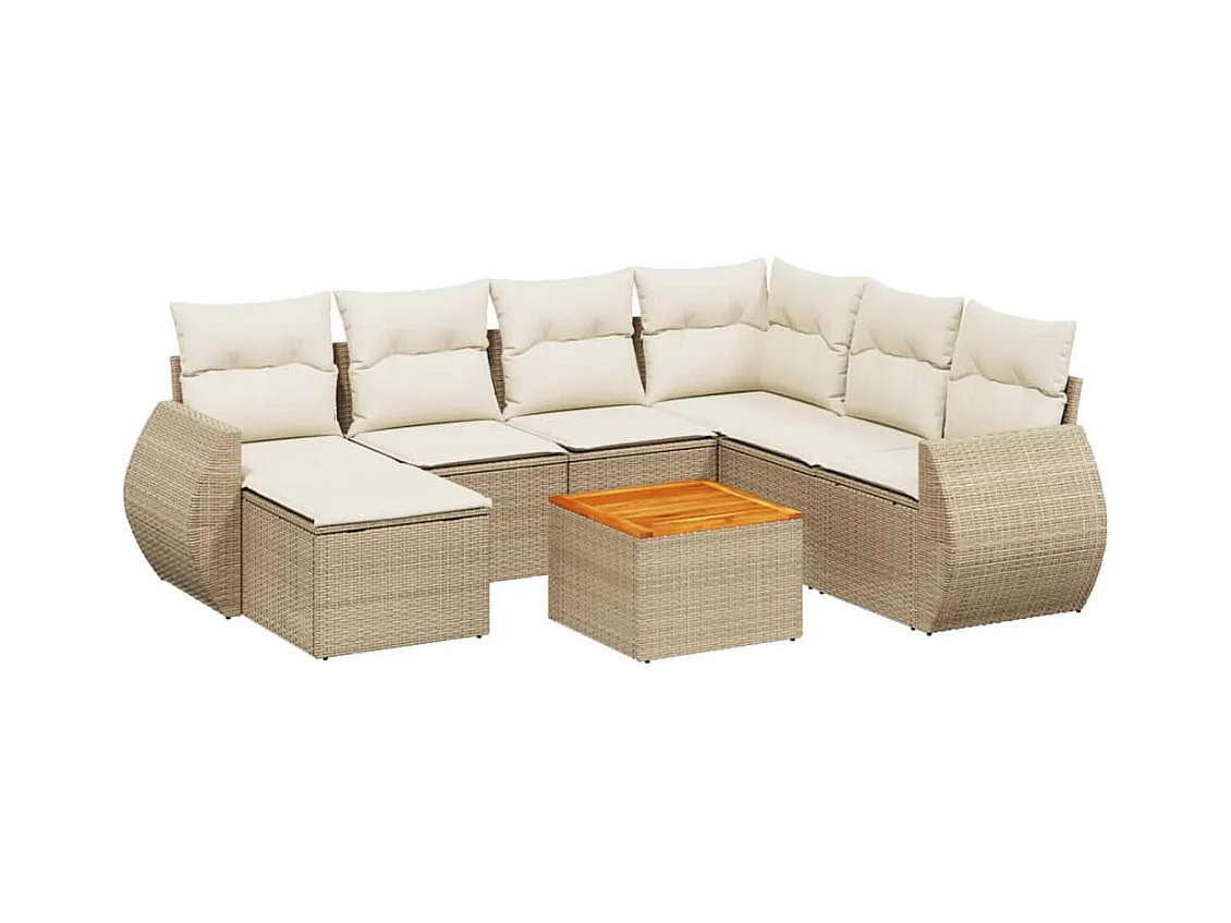 Set Divano da Giardino 8 pz con Cuscini Beige Misto Polyrattan