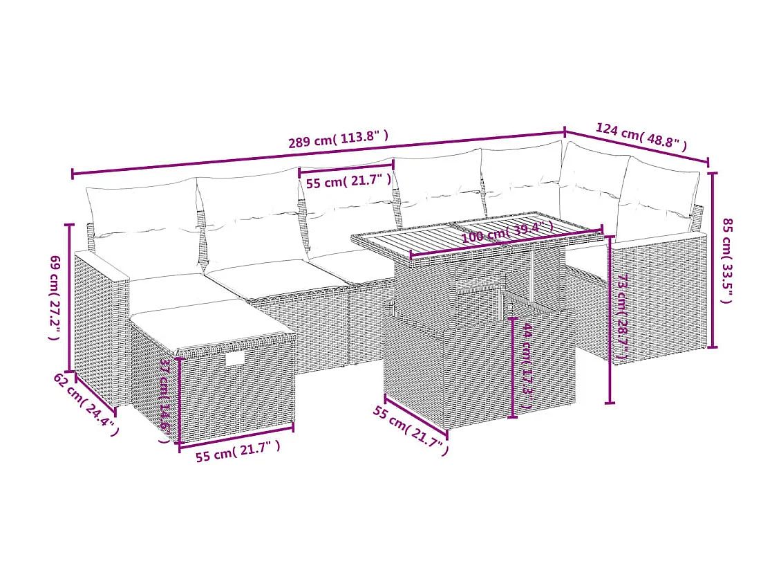 Set Divano da Giardino 8 pz con Cuscini Beige in Polyrattan