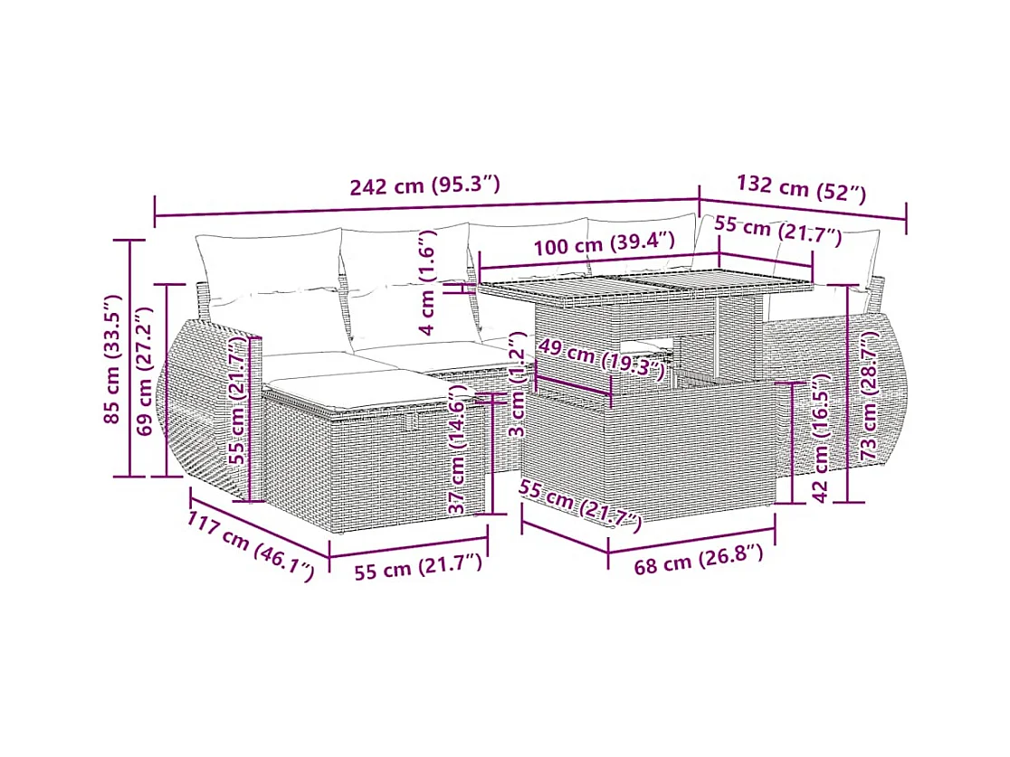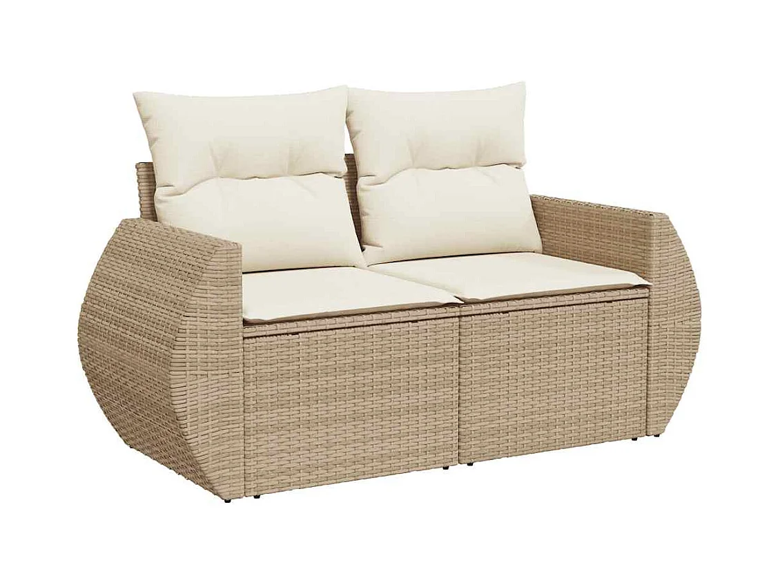 Set Divano da Giardino 9 pz con Cuscini Beige in Polyrattan