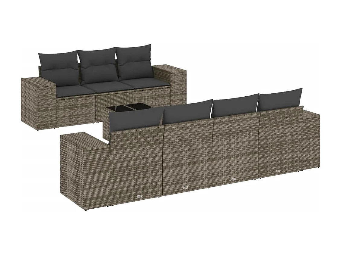 Mobili da giardino da 8 pezzi con cuscini in resina intrecciata grigia