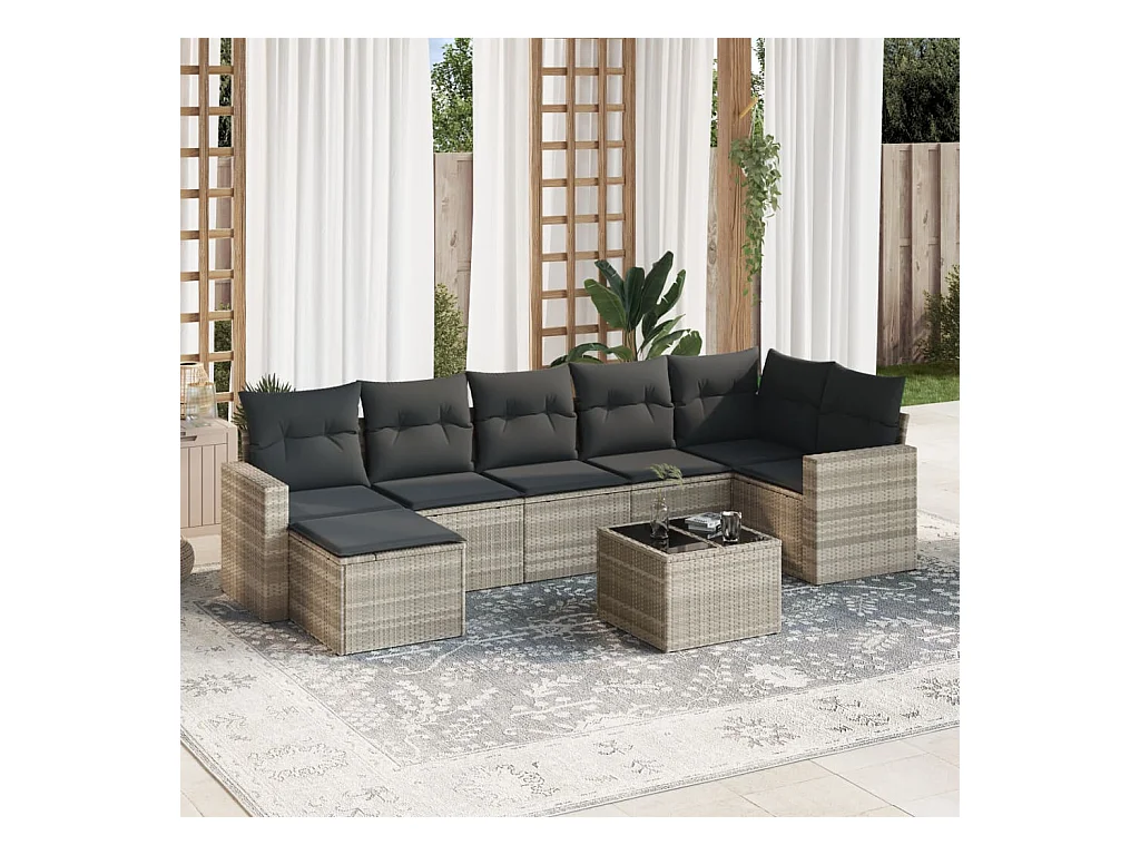 Mobili da giardino 8 pezzi con cuscini in resina intrecciata grigio chiaro