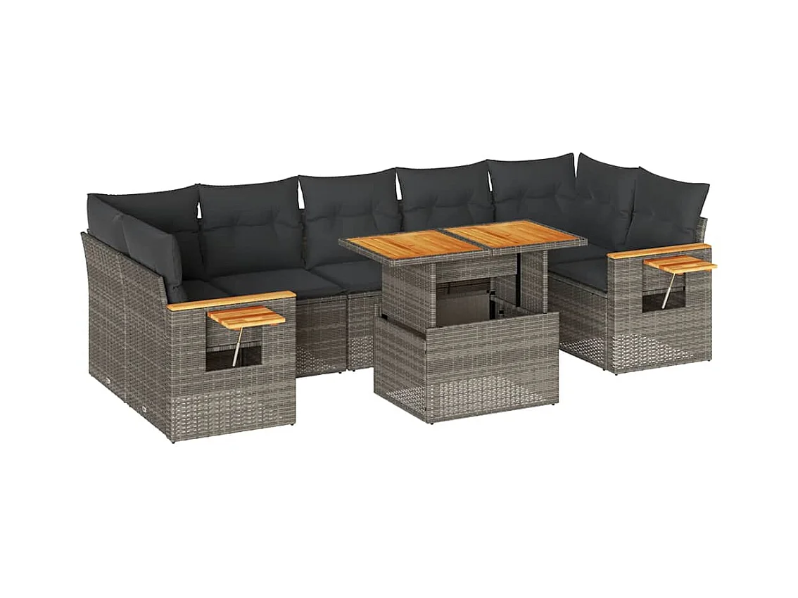 Set Divano da Giardino 8pz con Cuscini Grigio Polyrattan Acacia