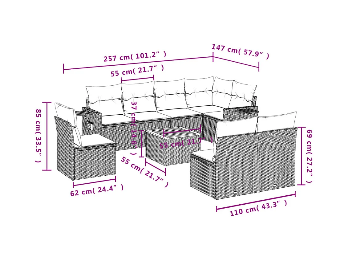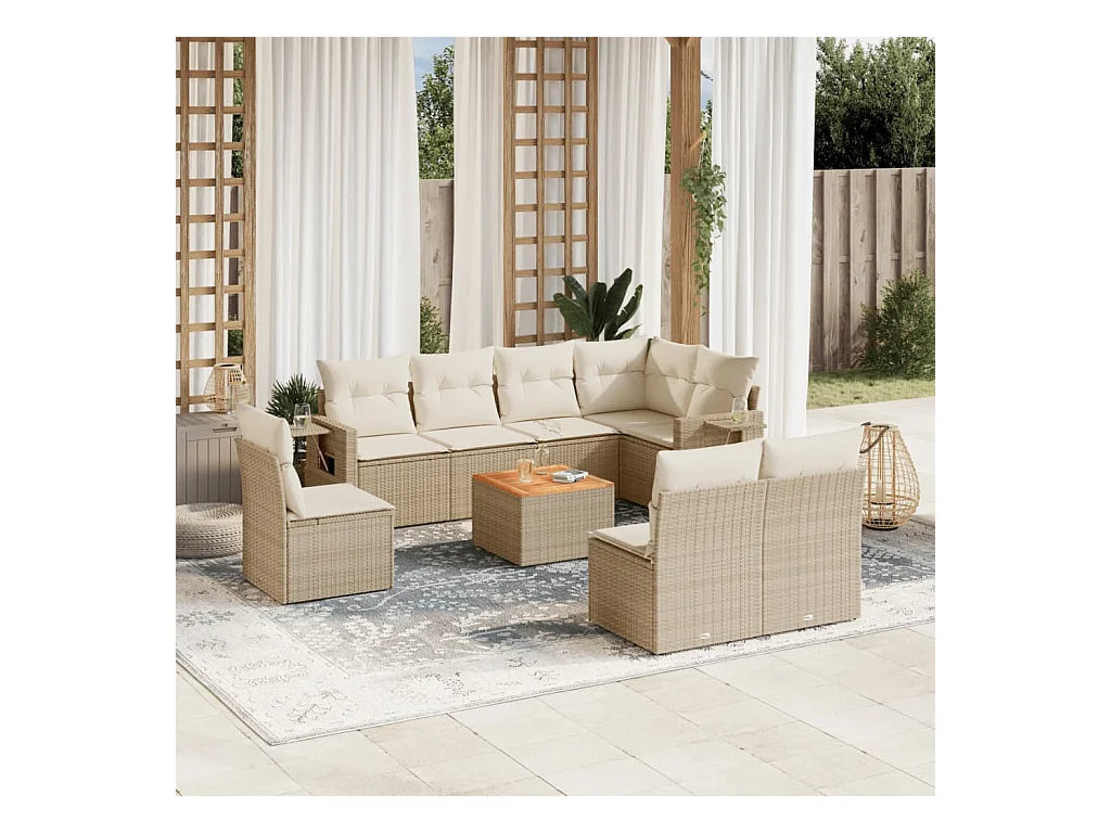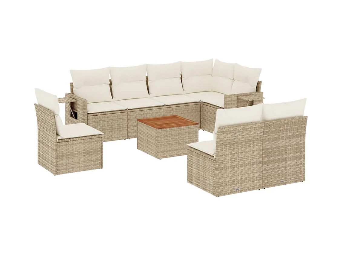 Mobile da giardino con cuscini 9 pz in resina intrecciata beige