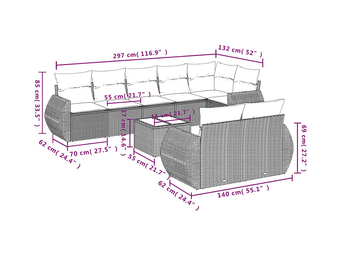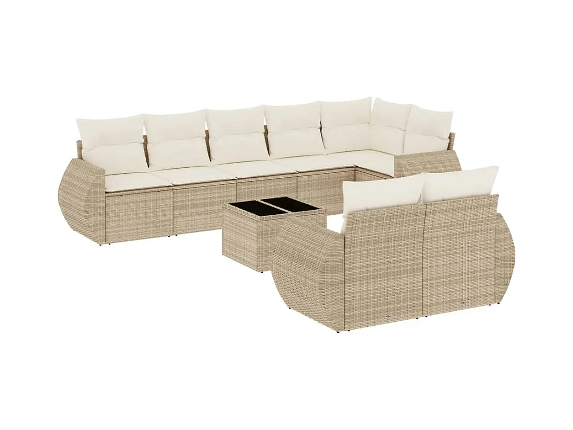 Mobile da giardino con cuscini 9 pz in resina intrecciata beige