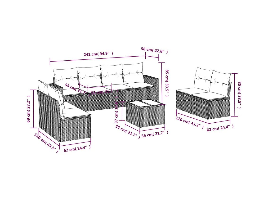 Set Divano da Giardino 9 pz con Cuscini Grigio in Polyrattan
