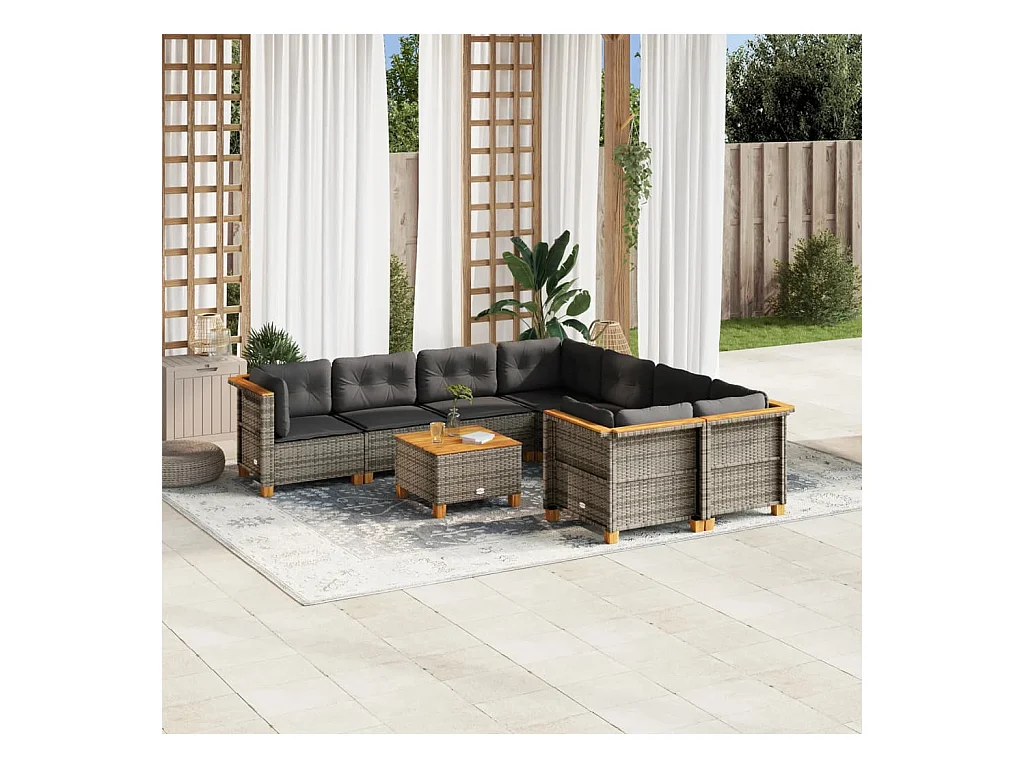 Set Divano da Giardino 9 pz con Cuscini Grigio in Polyrattan