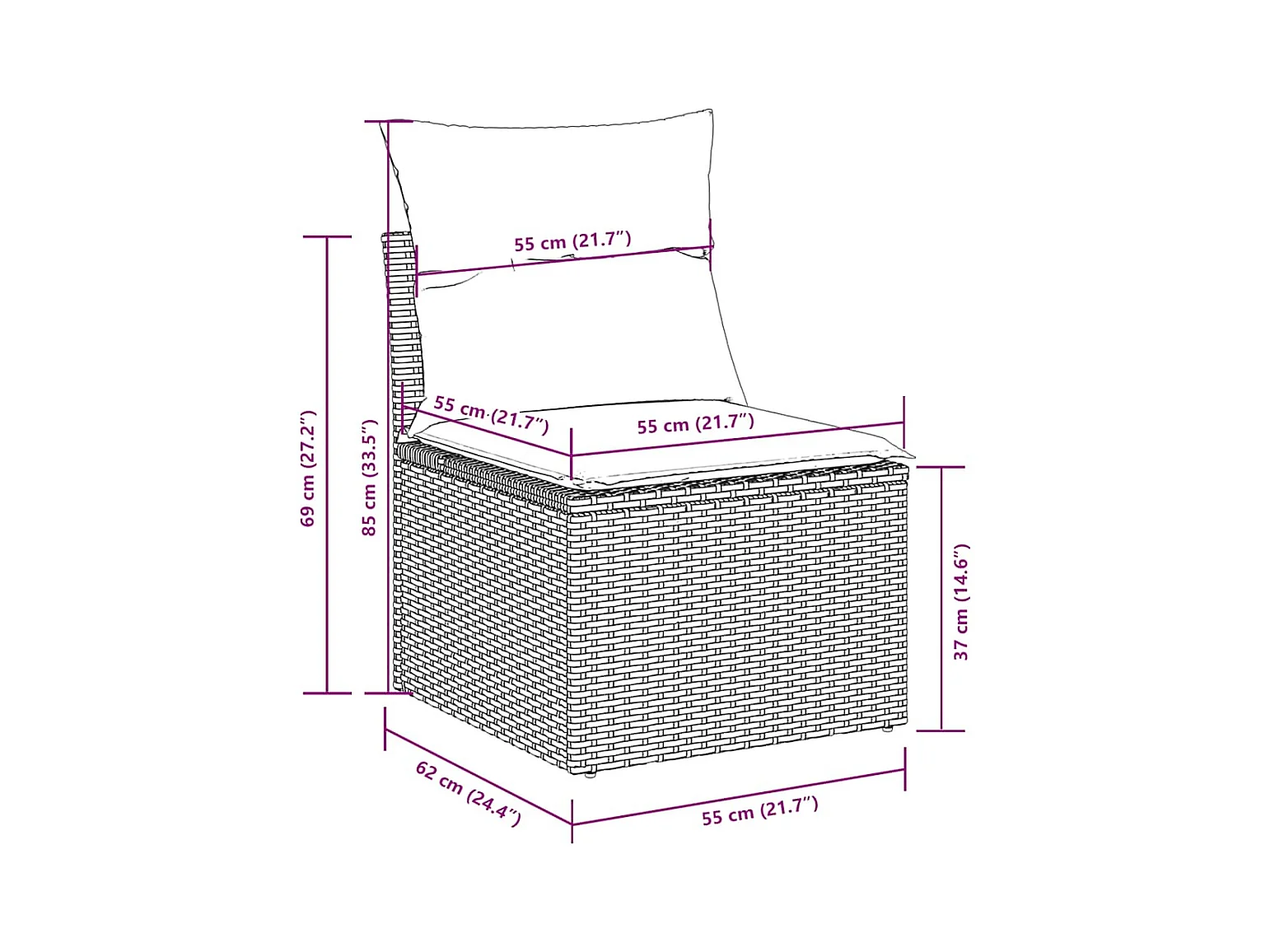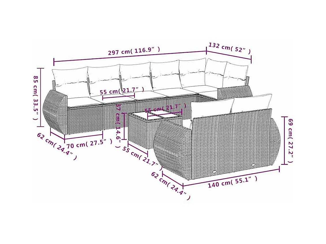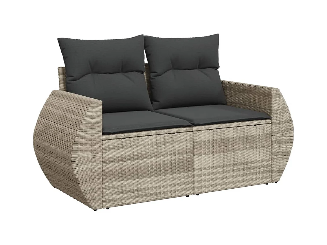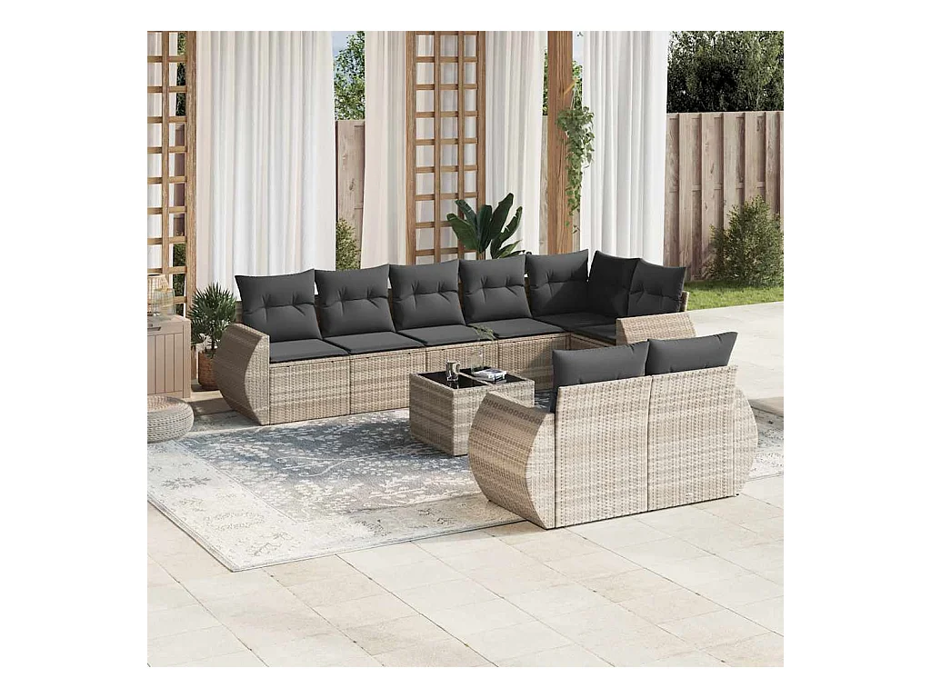 Set Divano da Giardino 9pz con Cuscini Grigio Chiaro Polyrattan
