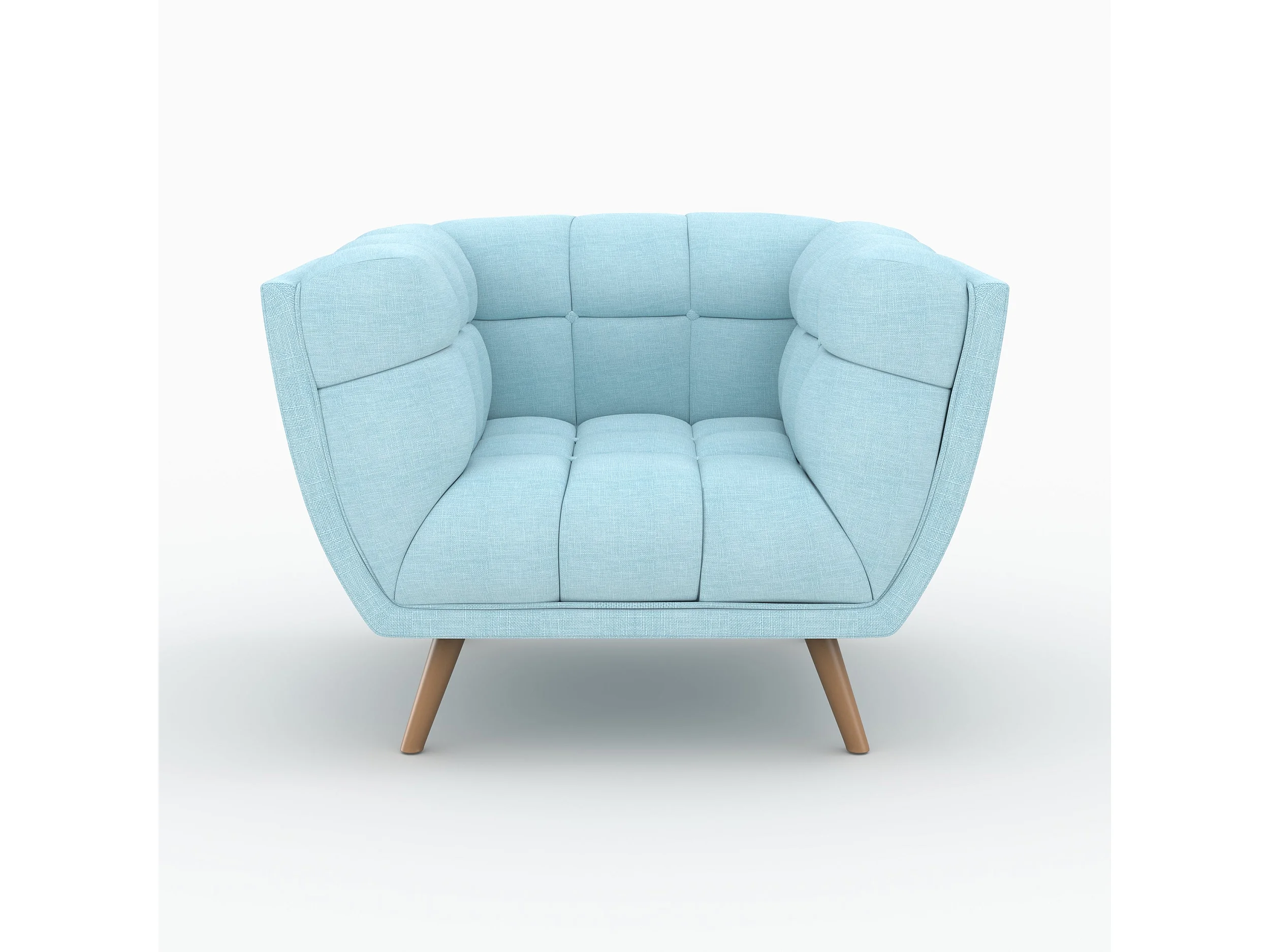 Set divano e poltrona in tessuto blu chiaro 4 posti - Carmen