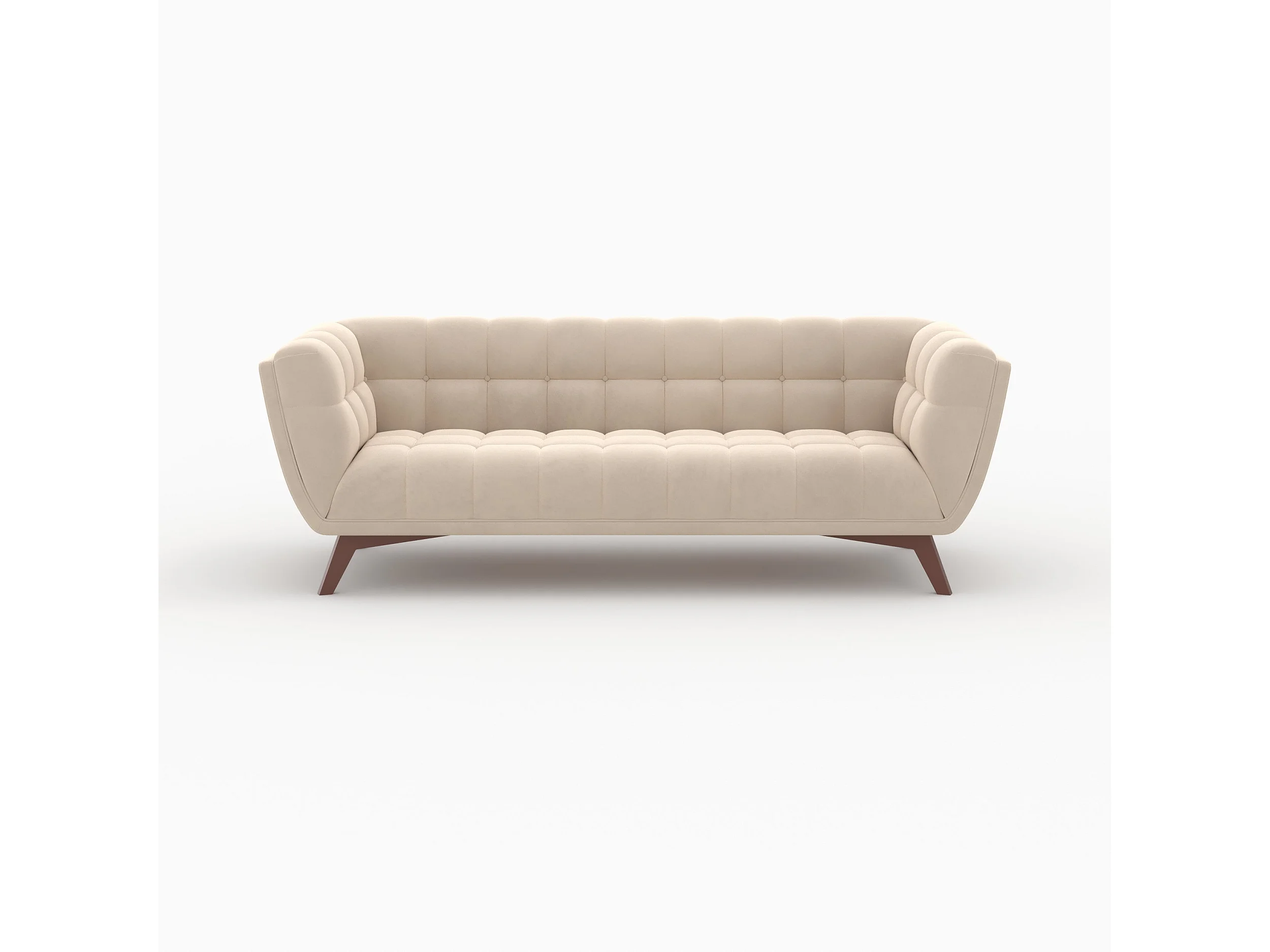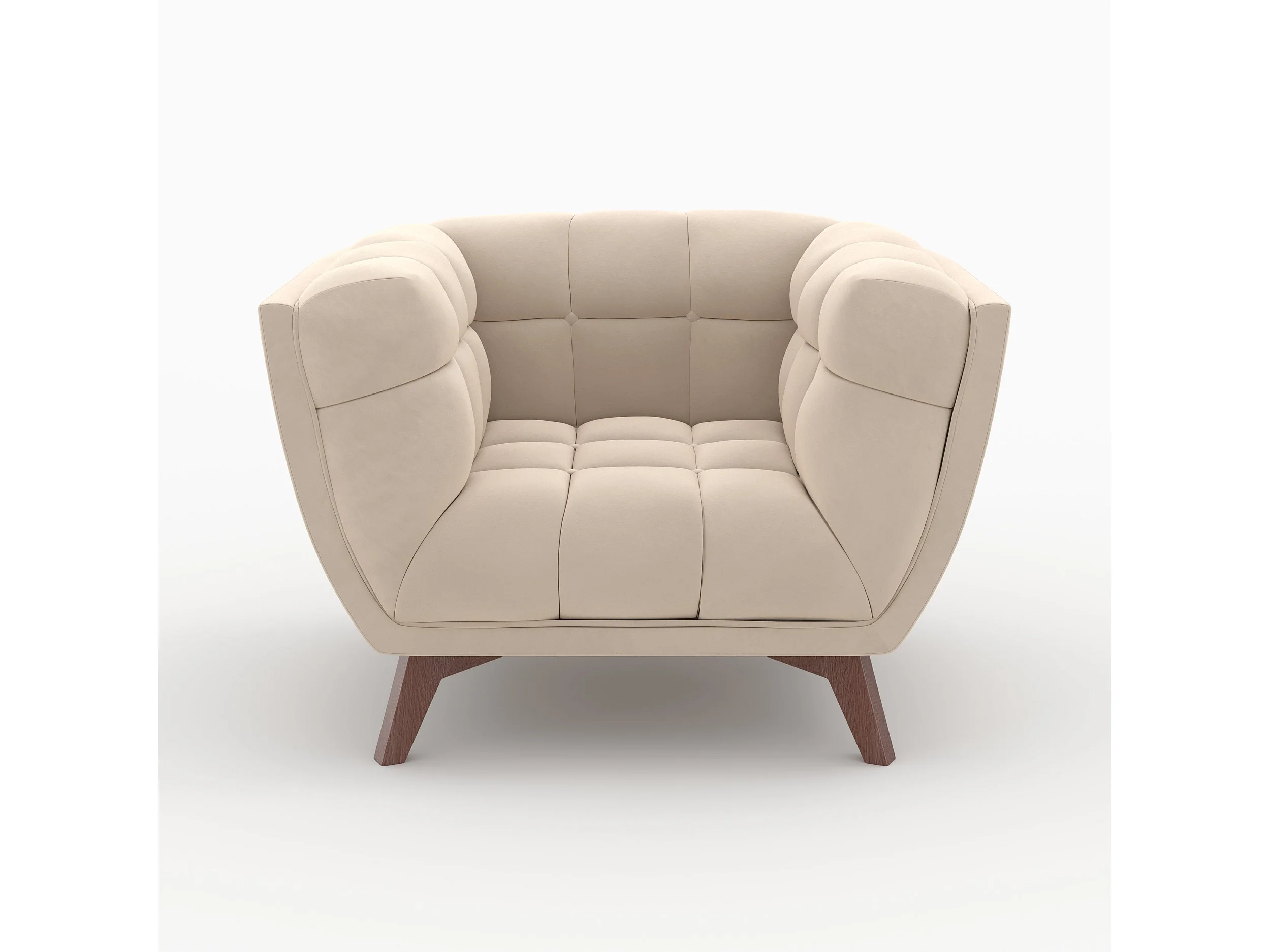 Set divano e poltrona in velluto beige 4 posti - Mona