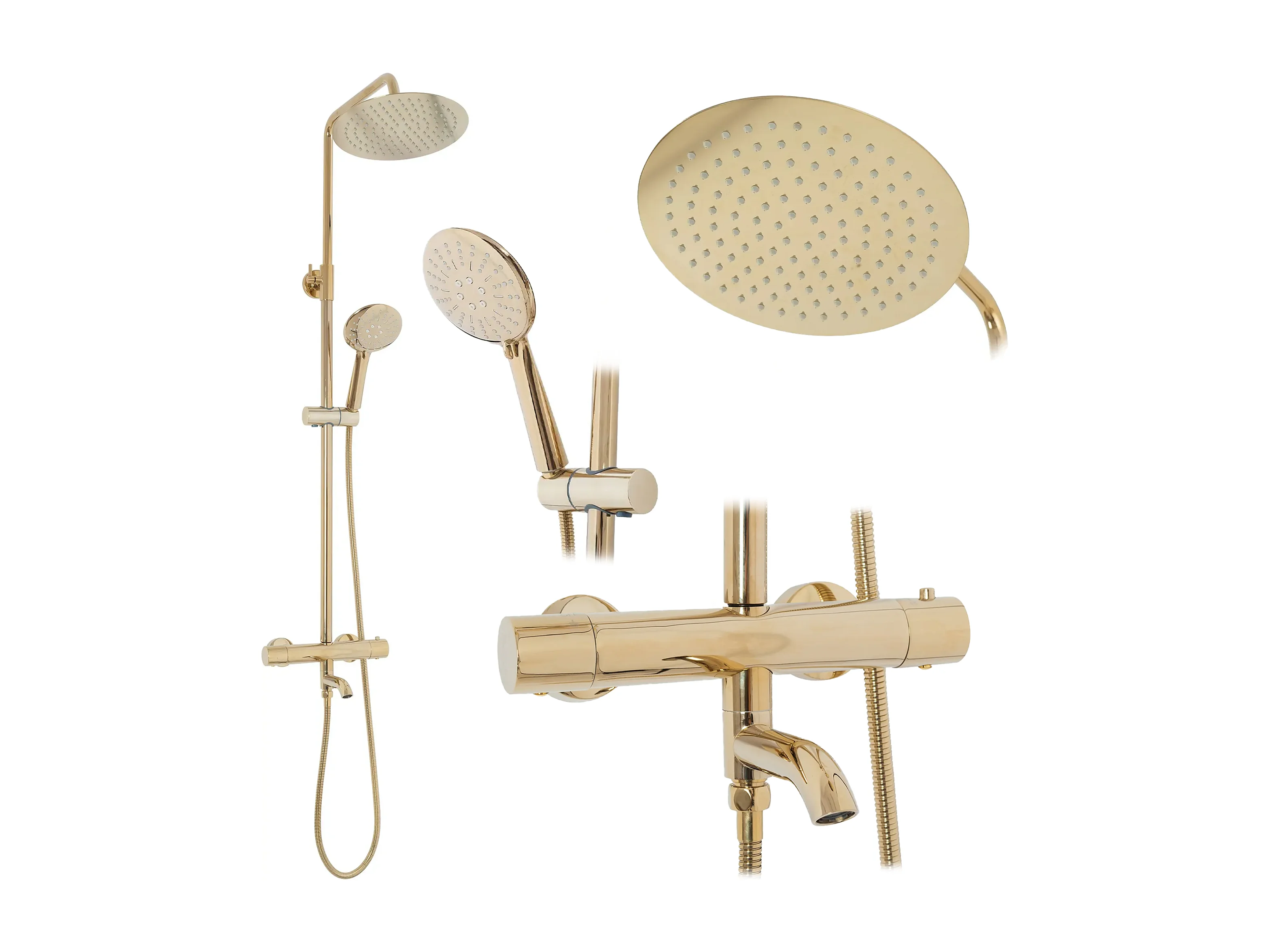 Kit doccia con termostato REA Lungo TermoStat Gold - Soffione doccia ultra-pioggia e rubinetto con elementi