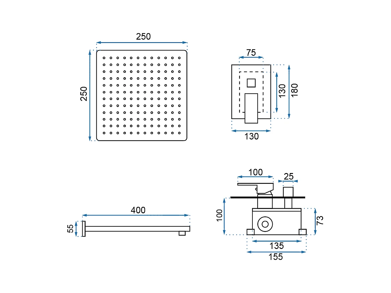 Set doccia con miscelatore e soffione a pioggia TAGBO Oro