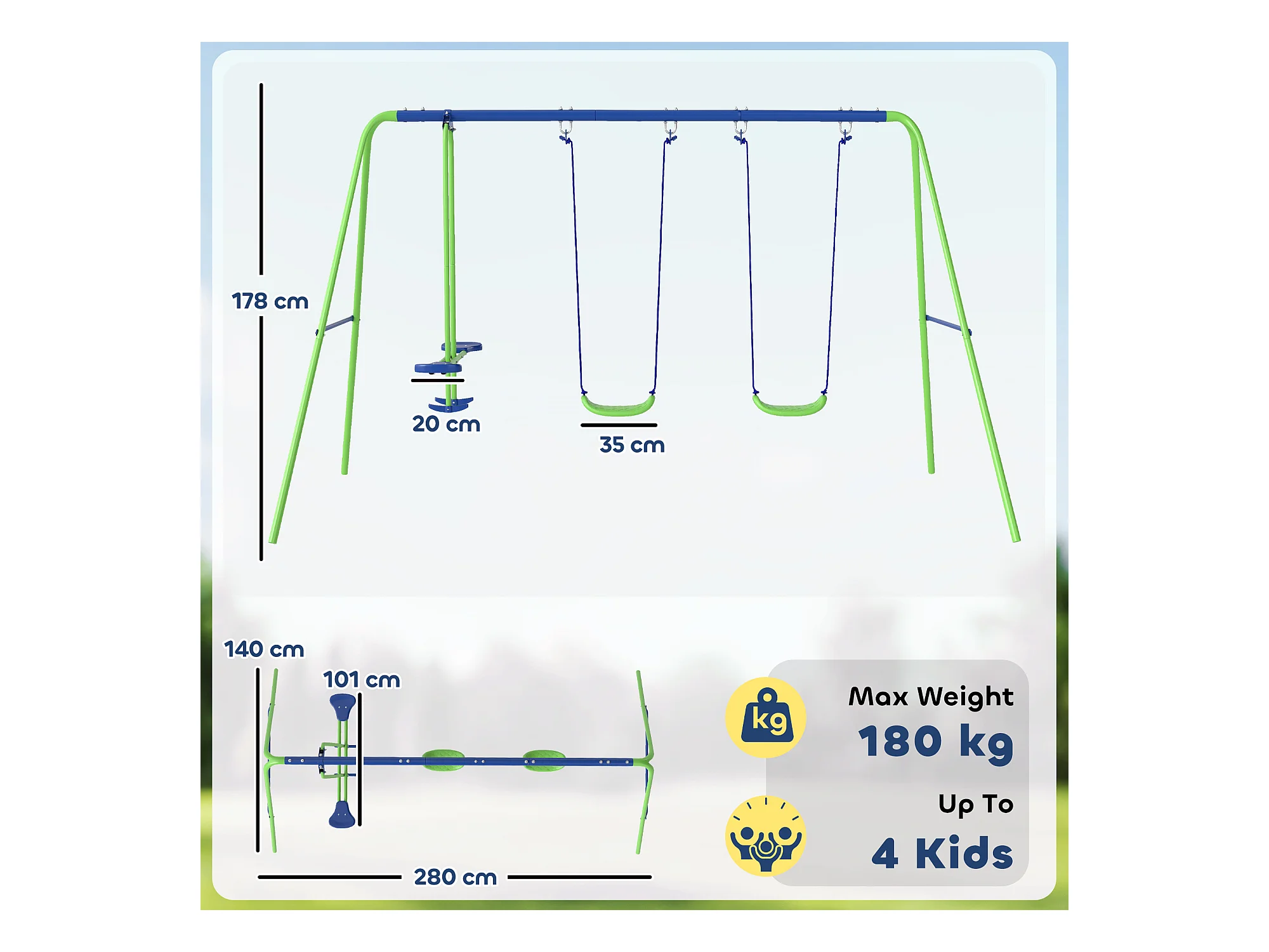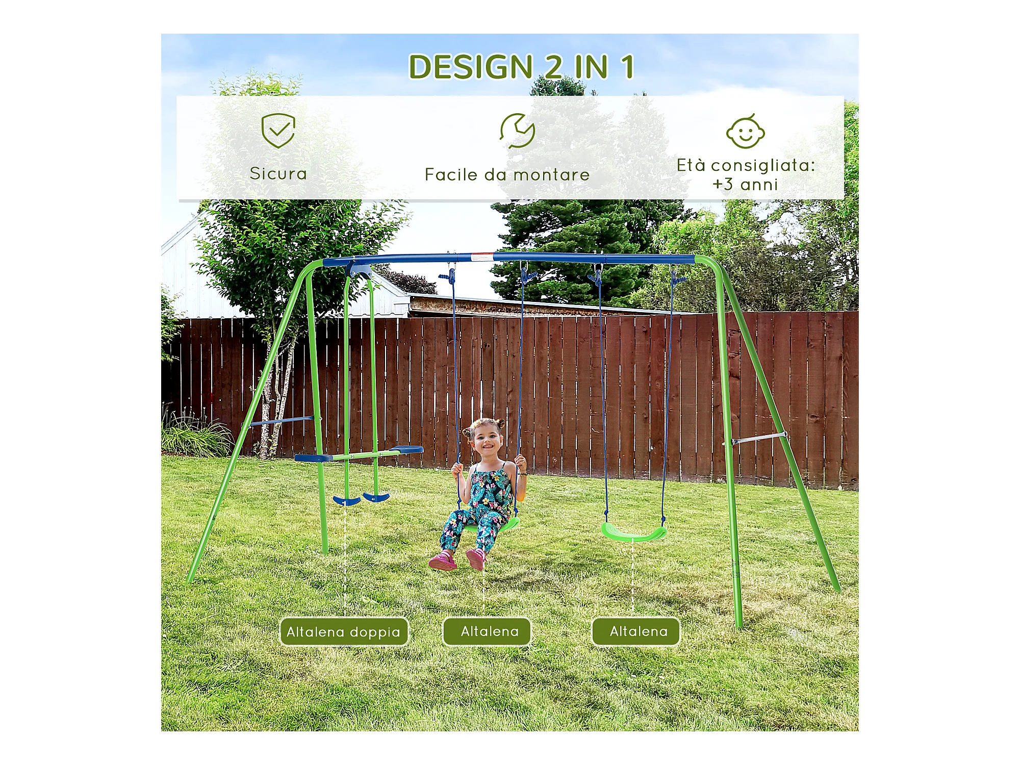 Set esterno con 2 altalene singole e 1 altalena doppia 280x140x178 cm