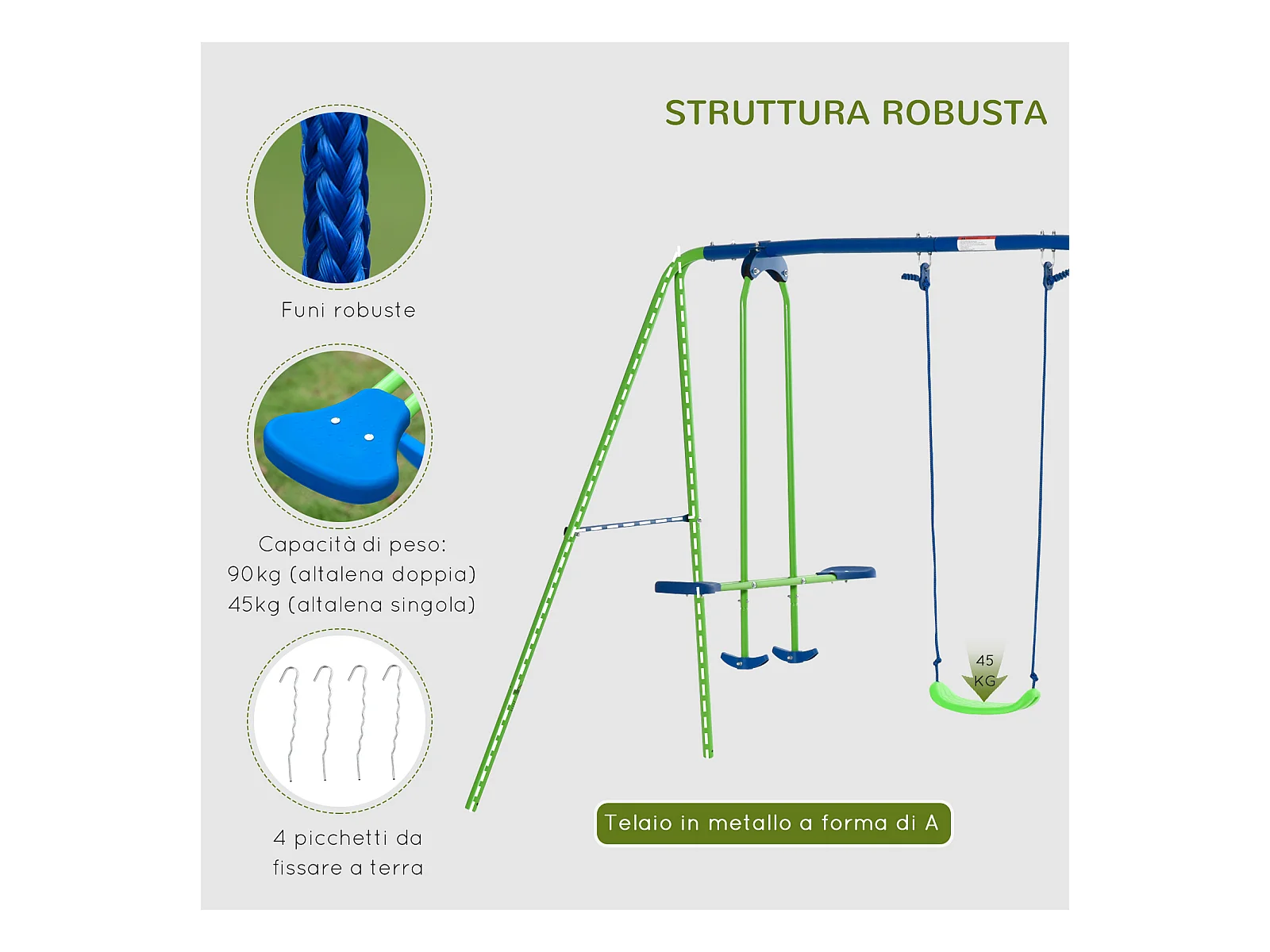 Altalena da giardino in acciaio e pe per bambini 3-8 anni
