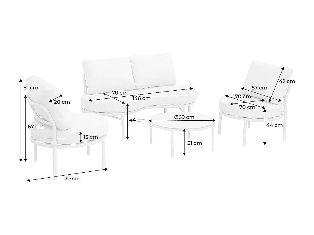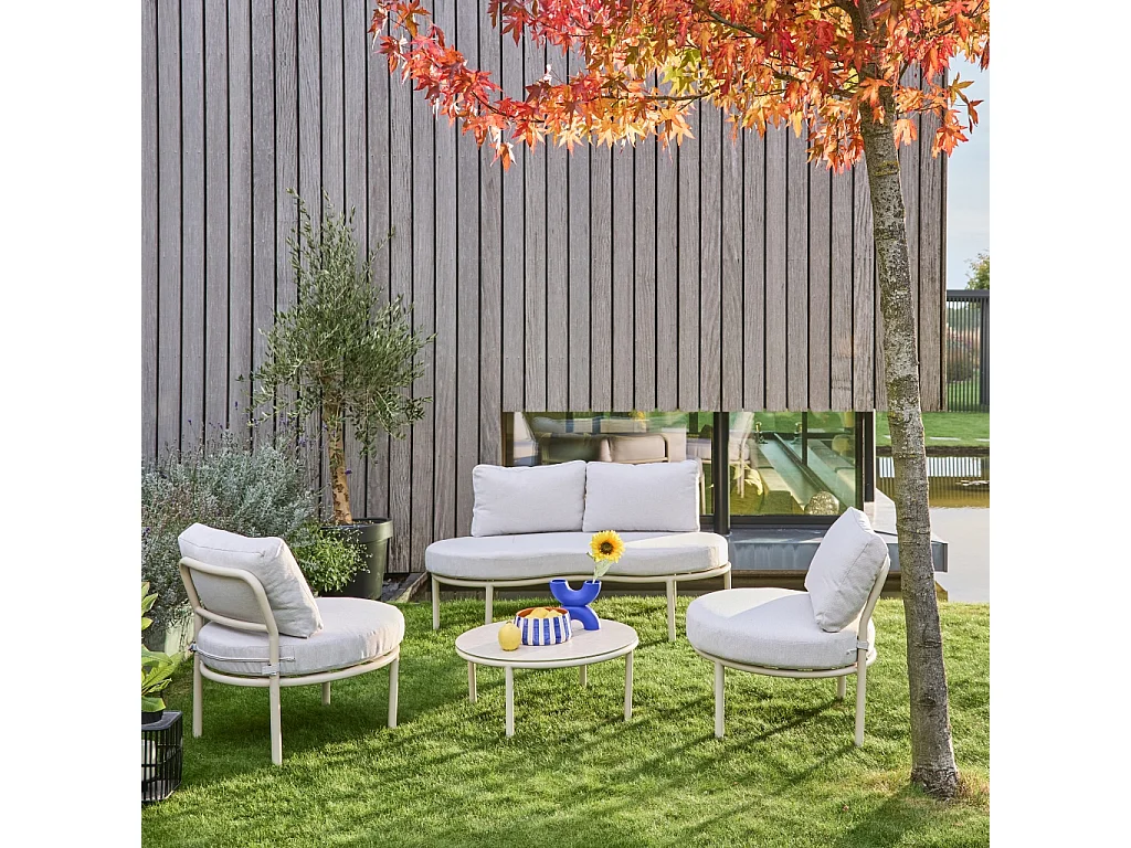 Set giardino in alluminio e tessuto, 4 posti, beige