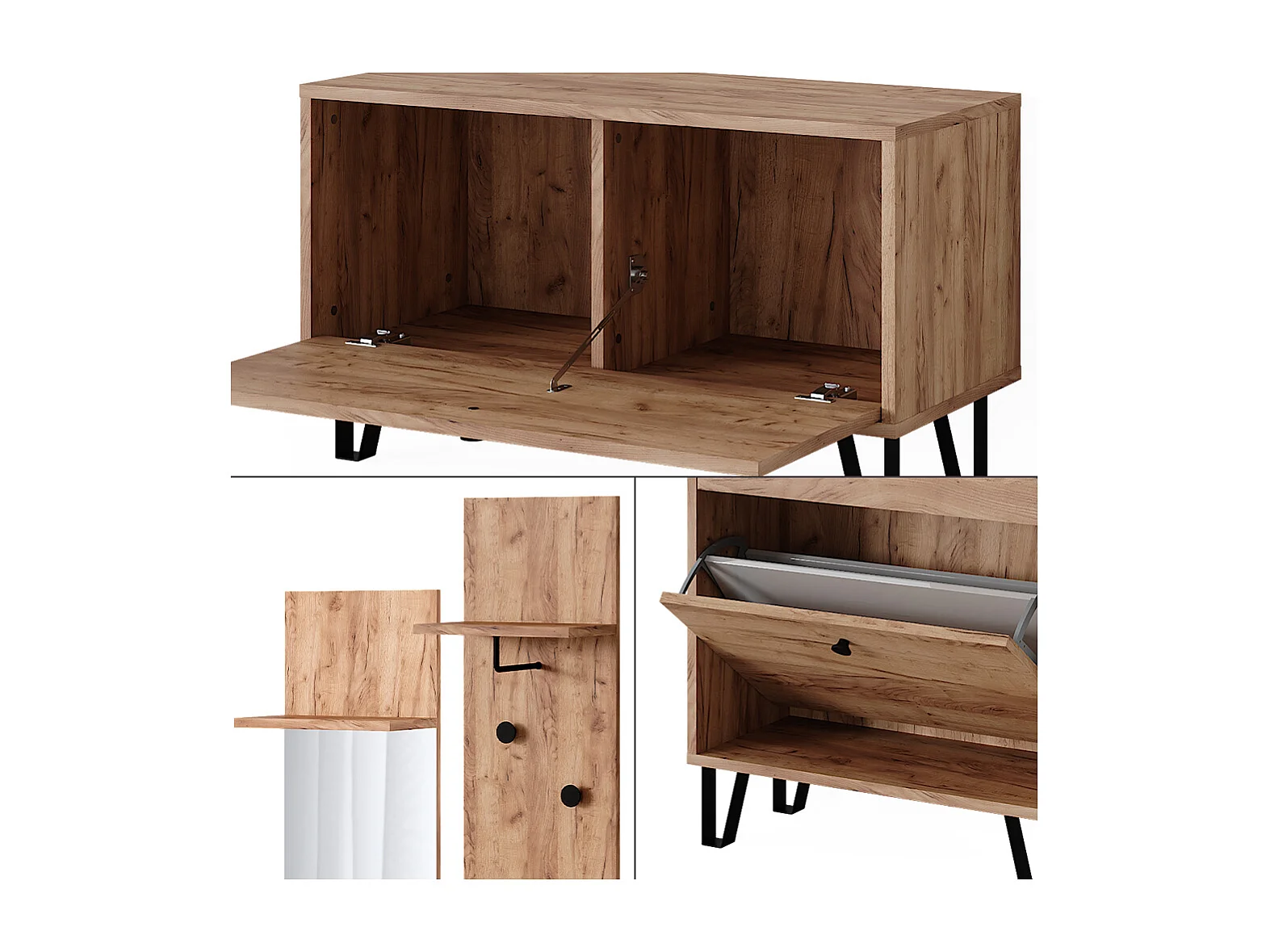 Appendiabiti con specchio e scarpiera, design pratico, pannello truciolare, colore rovere (190x104x39 cm)