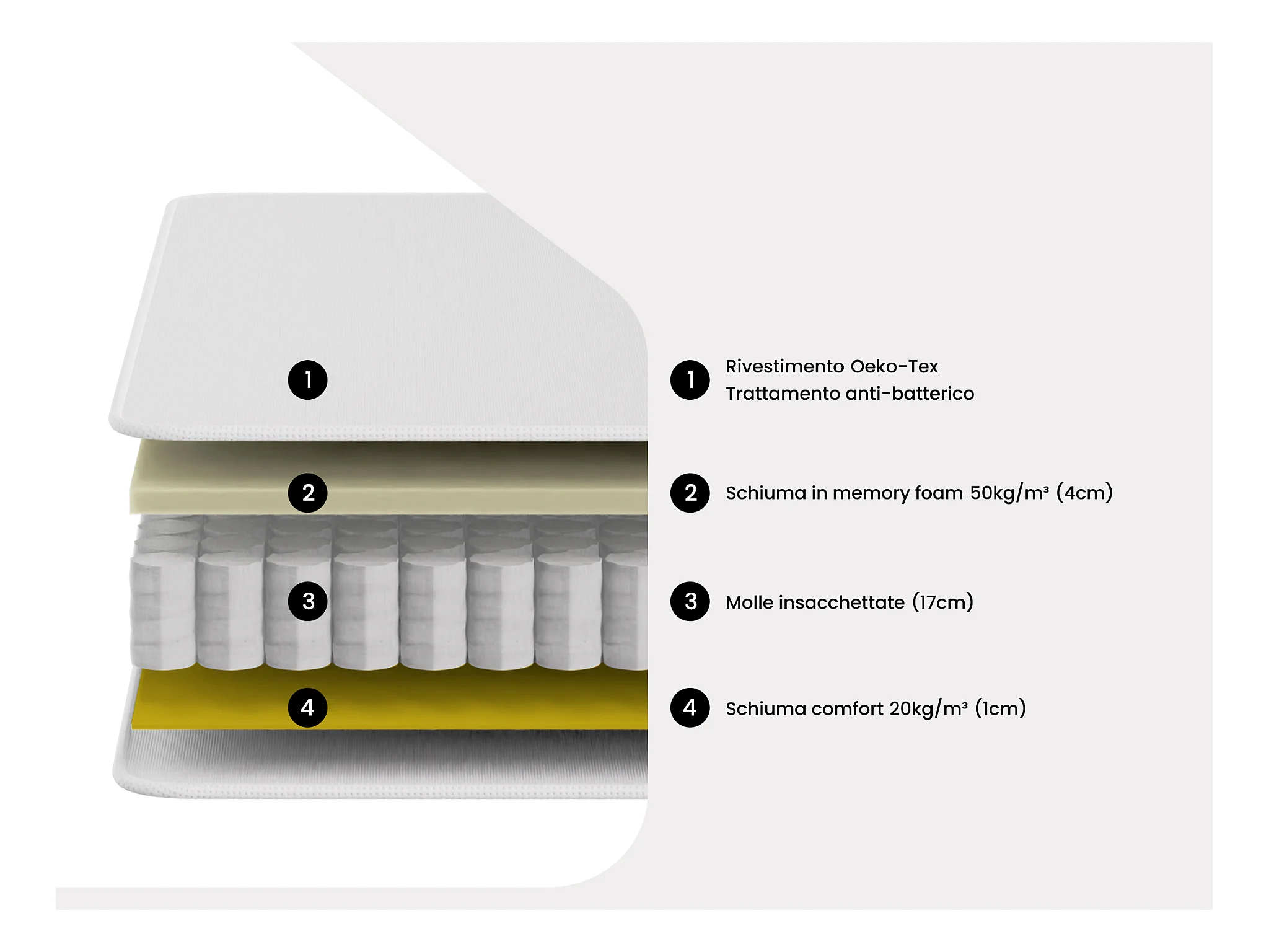 Set ILLUSION di YSMÉE: Rete e Materasso molle insacchettate e memory 160 x 200