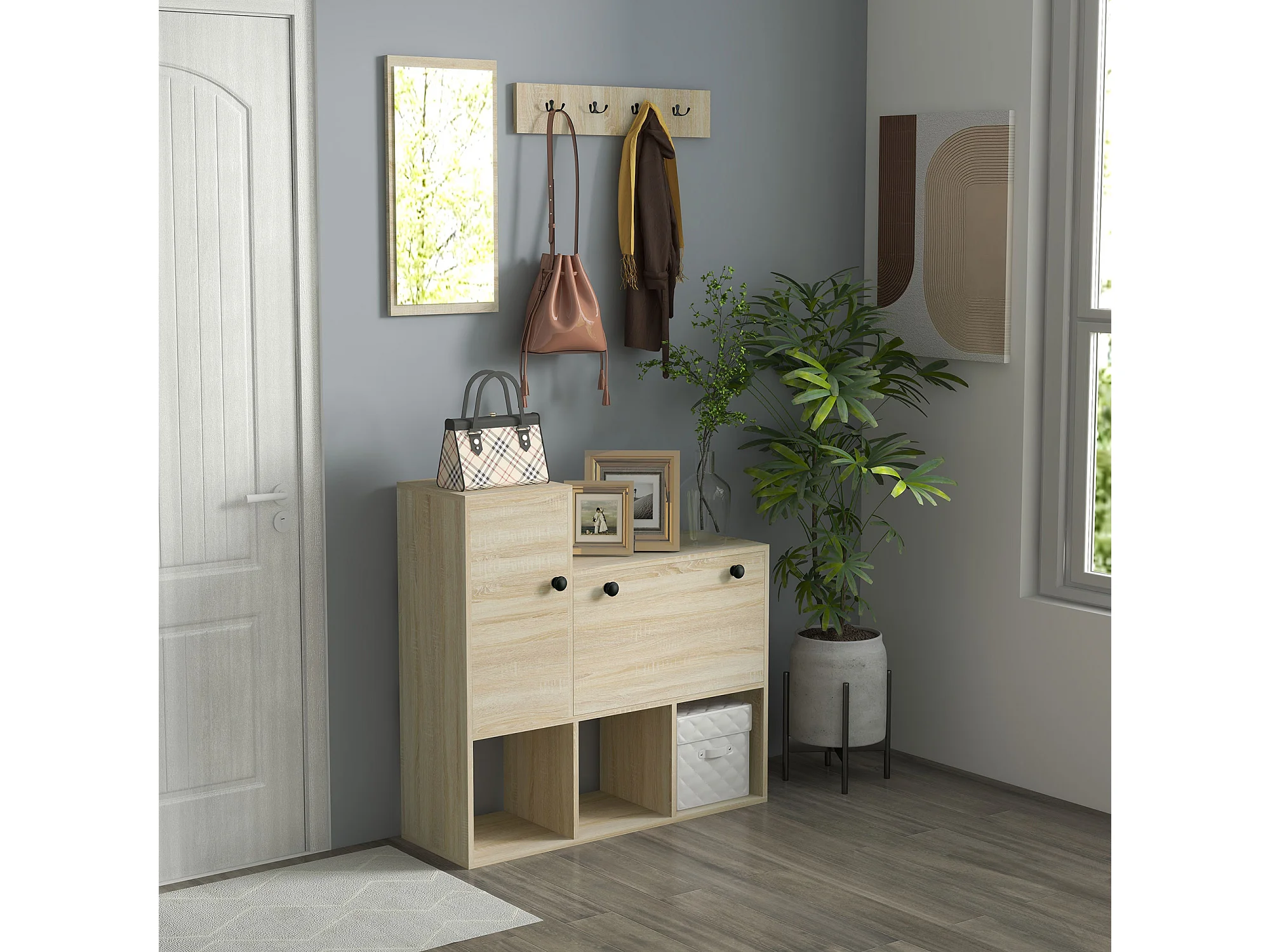 Appendiabiti in legno naturale 4 ganci 3 mensole 2 cassetti