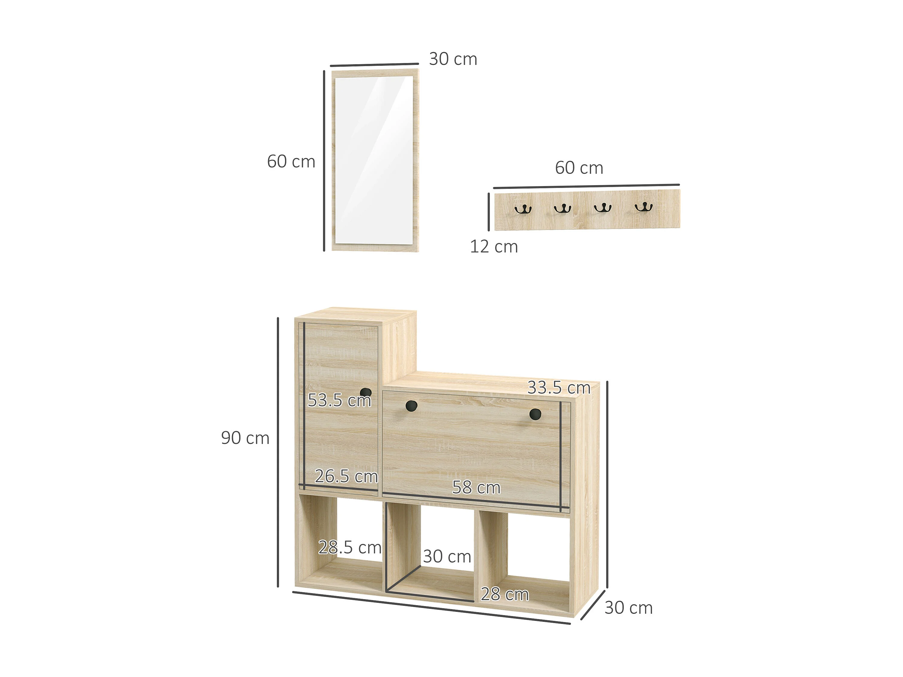 Set ingresso con attaccapanni scarpiera da 9 scarpe e specchio