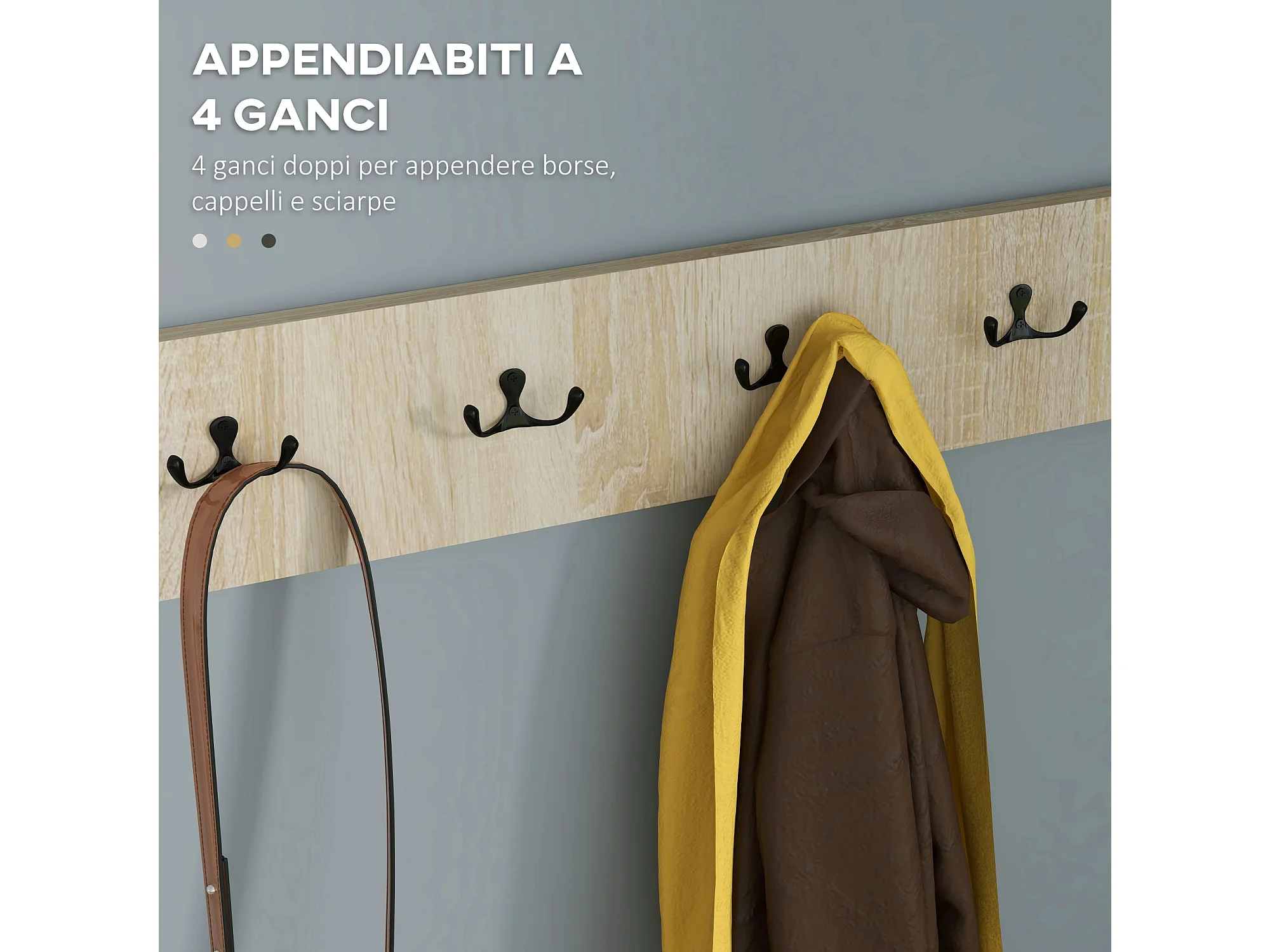 Mobile da ingresso con scarpiera bassa panca e appendiabiti da 4 ganci