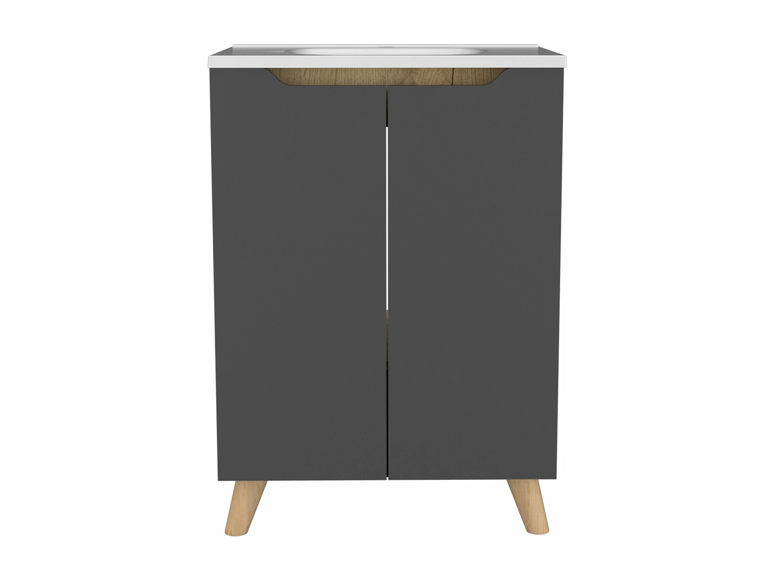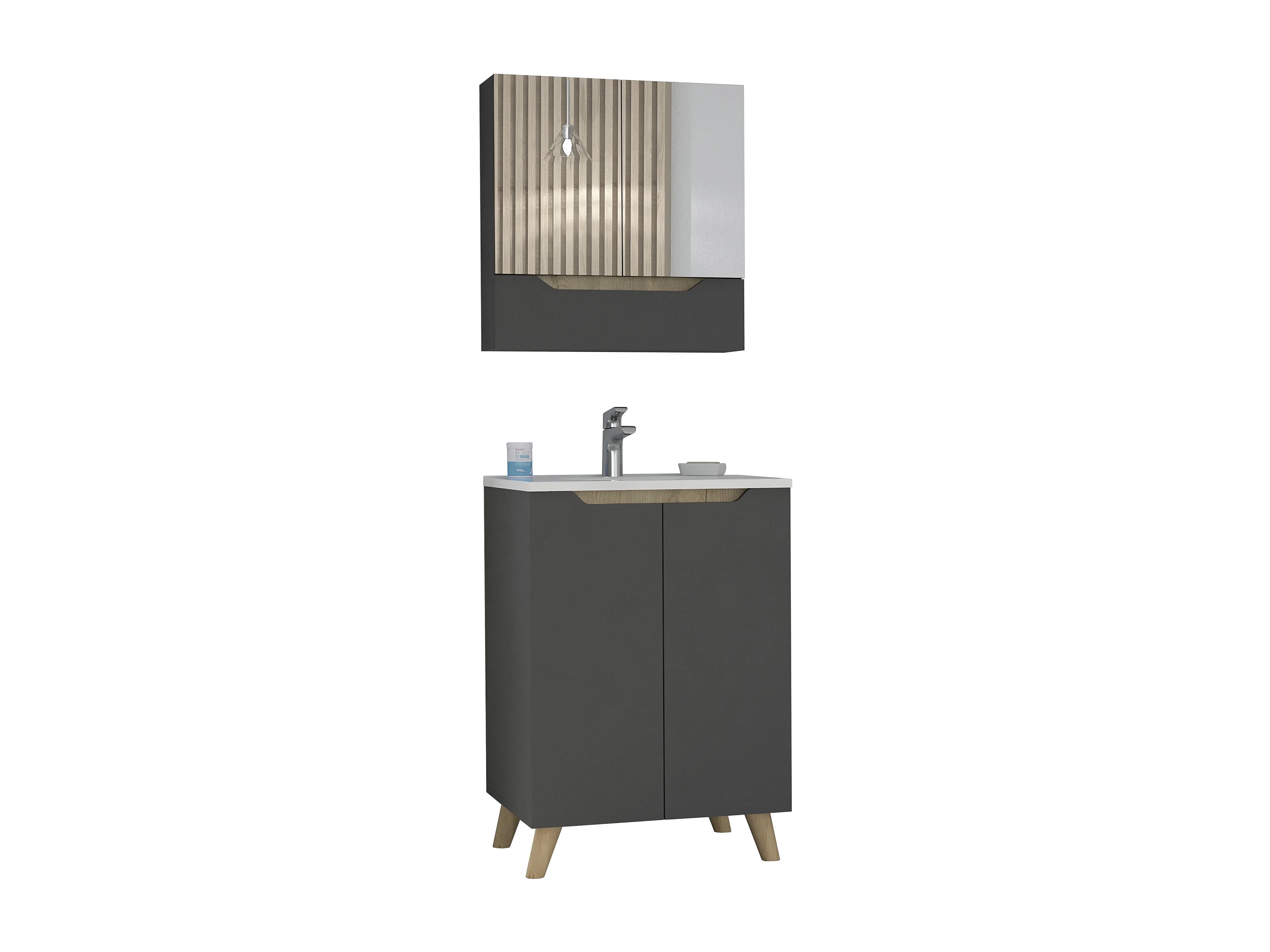 Set Laurent, mobile a muro con specchio + mobili da bagno in piedi con lavandino, 62/86 a cm x 60/60 an cm x 15/45.5 p cm, piombo/dune