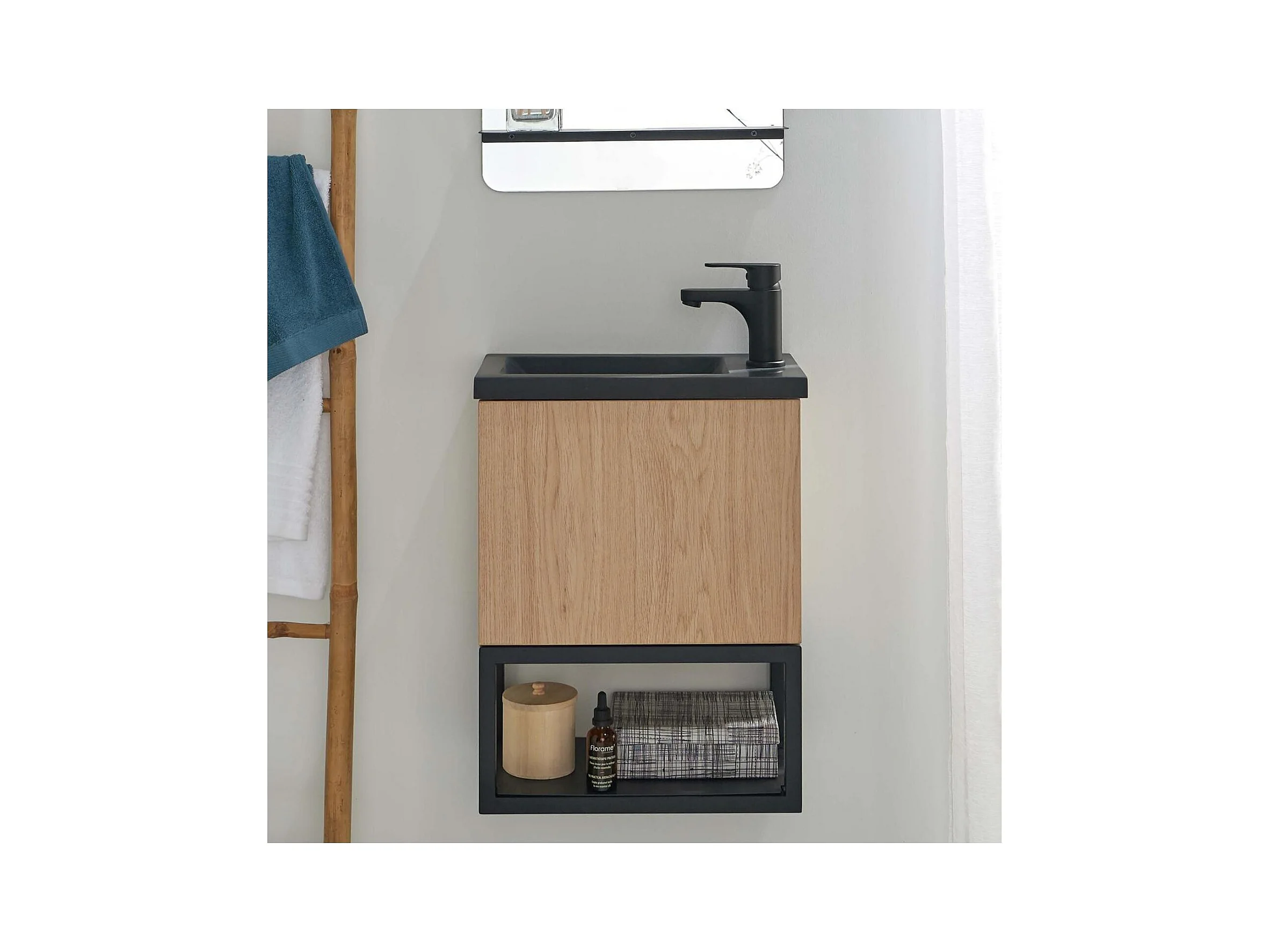 Mobile lavabo sospeso NOVA in metallo e legno con vasca in resina 40x50cm