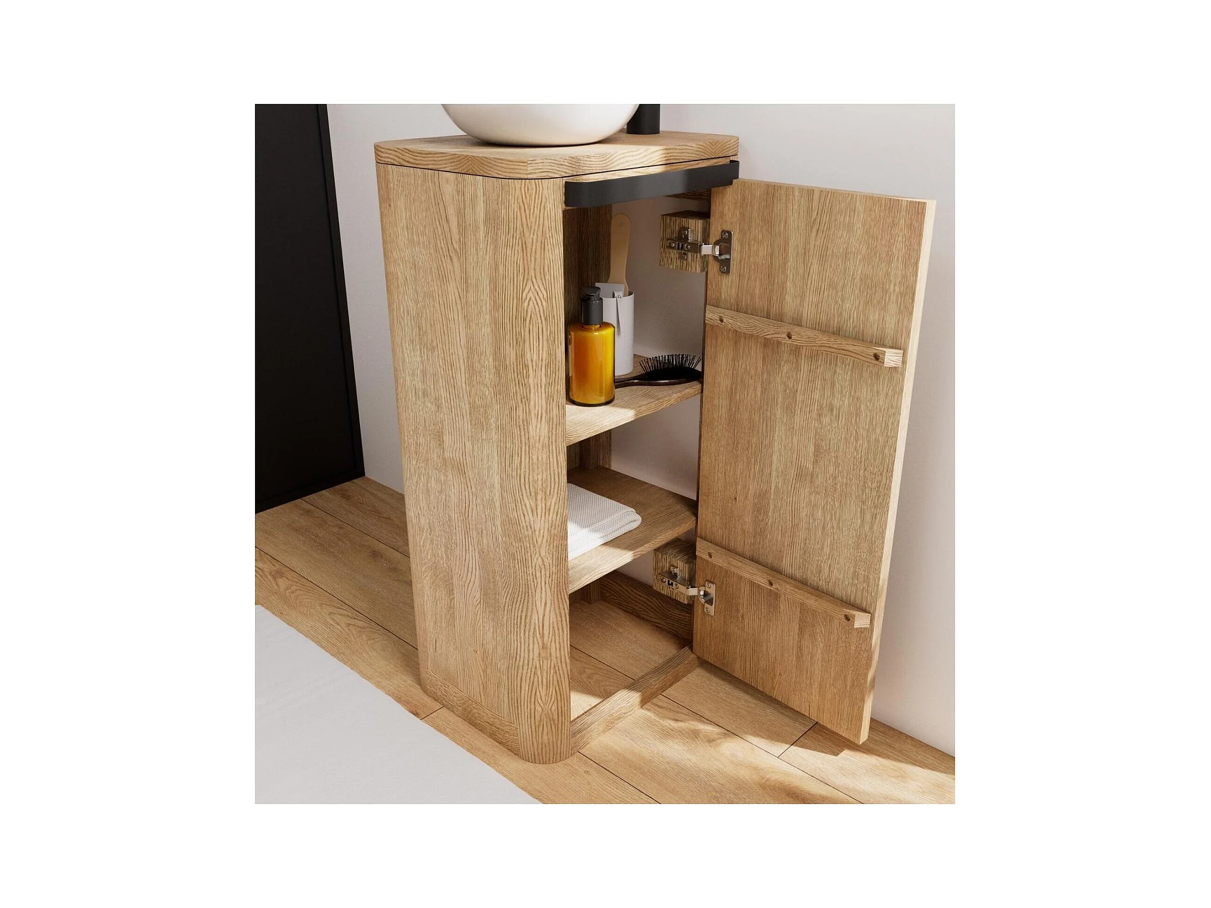 Set lavabo Totem in rovere massello invecchiato con vasca rotonda TOM