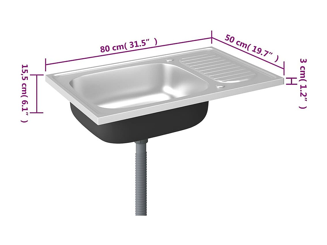 Set lavello e scolapiatti cucina argento 800x500x155 mm acciaio inox