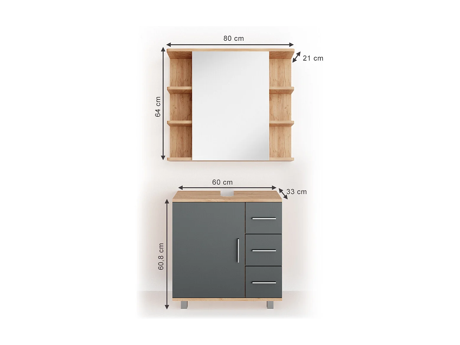 Set di mobili da bagno sonoma/antracite 60x35x65 karen