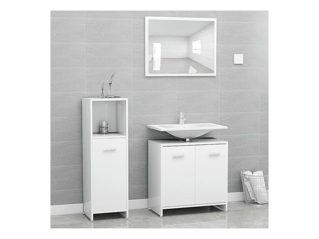 Set Mobili da Bagno 3 pz Bianco in Truciolato