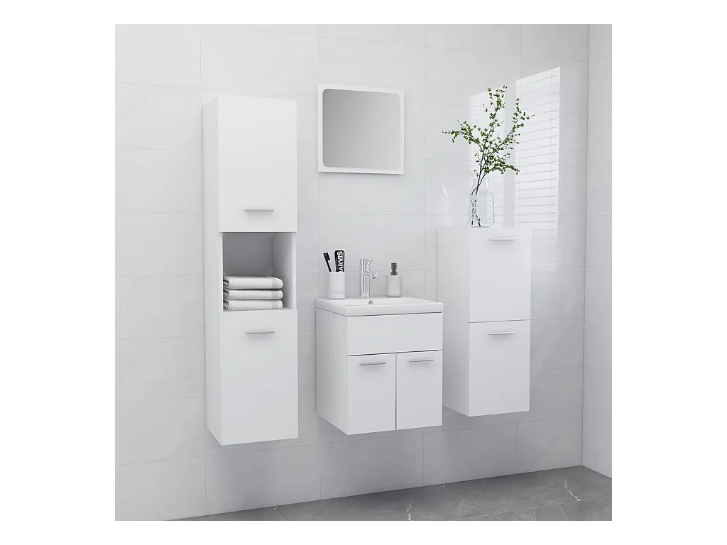 Set Mobili da Bagno Bianco in Legno Multistrato