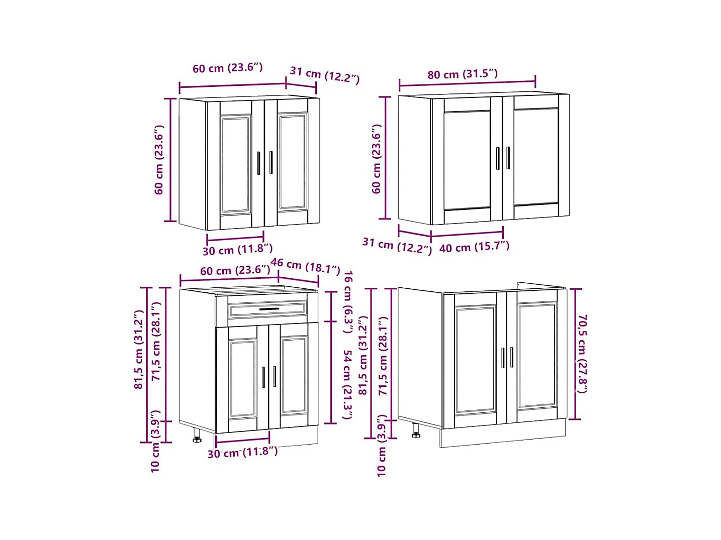 Set Mobili da Cucina 4 pz Porto Bianchi Legno Multistrato