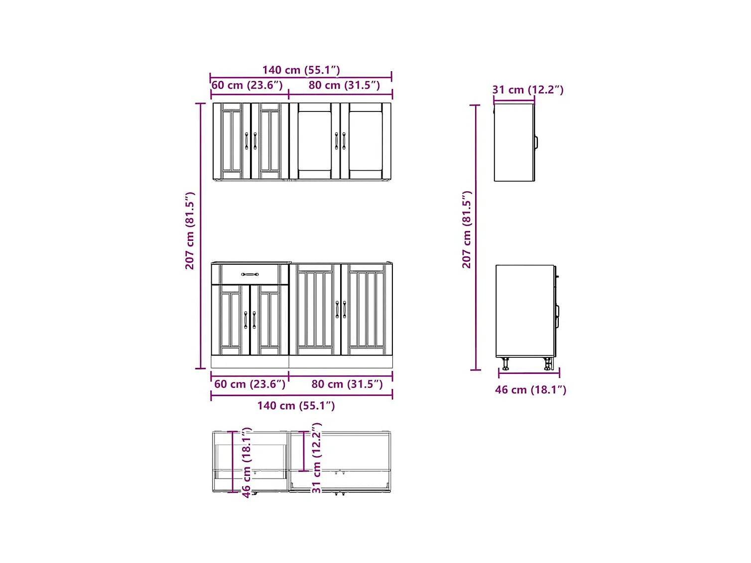 Set Mobili da Cucina 7 pz Kalmar Bianco Legno Multistrato