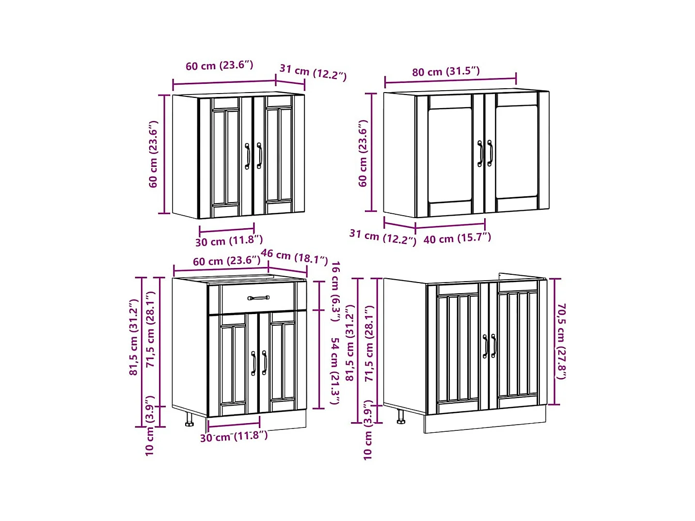 Set Mobili da Cucina 4 pz Kalmar Bianchi Legno Multistrato