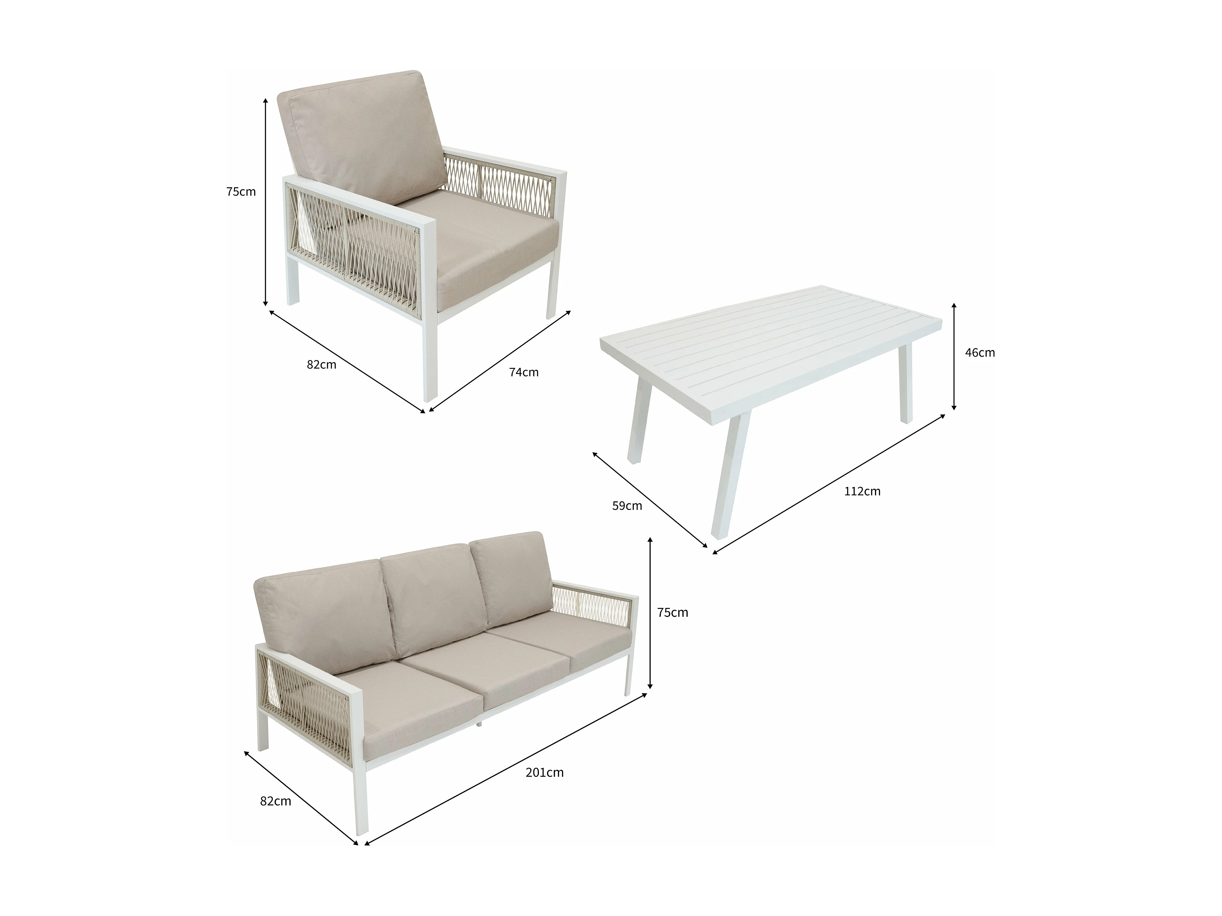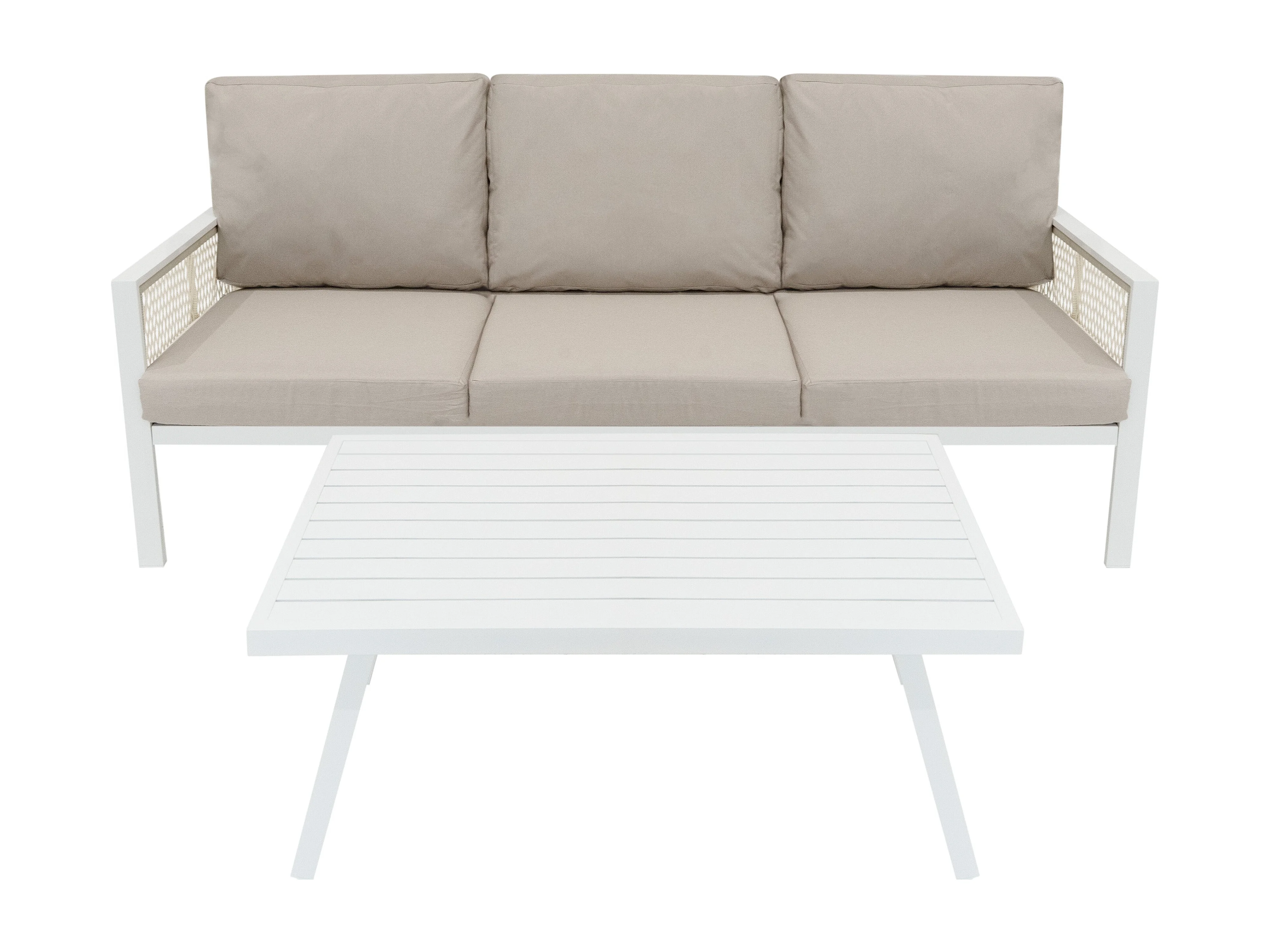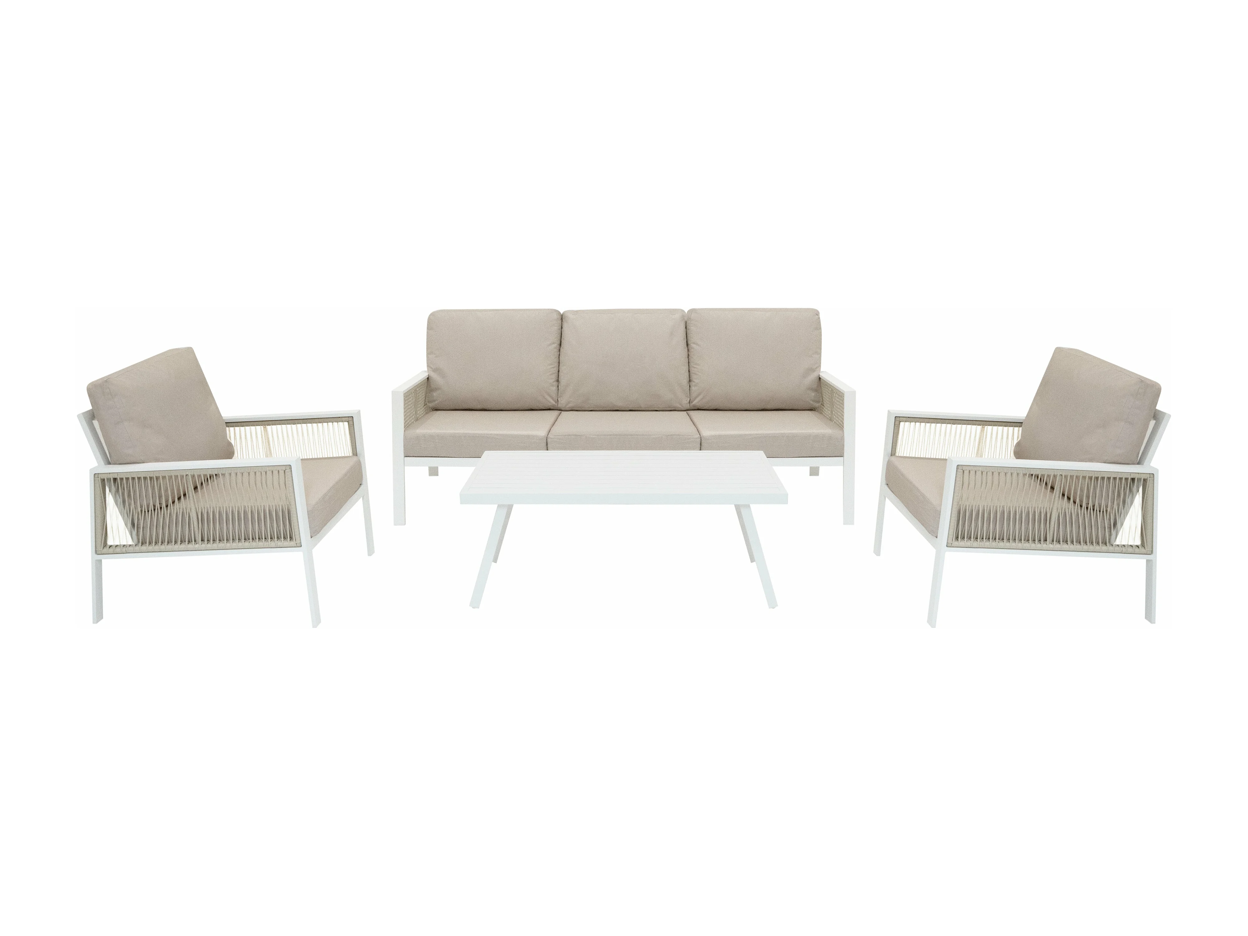 Set Mobili da Esterno 4 Pezzi in Alluminio Divano Tavolino Poltrone Bianco