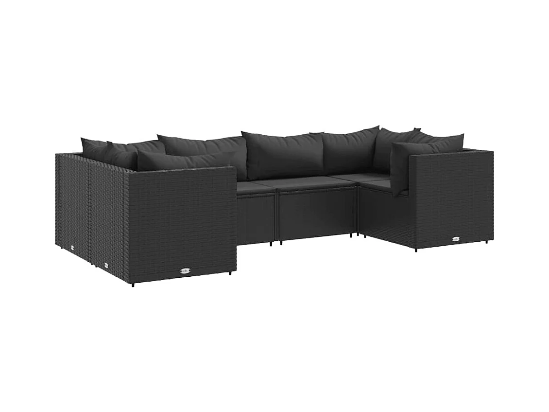 Set Divano da Giardino 6 pz con Cuscini Nero in Polyrattan