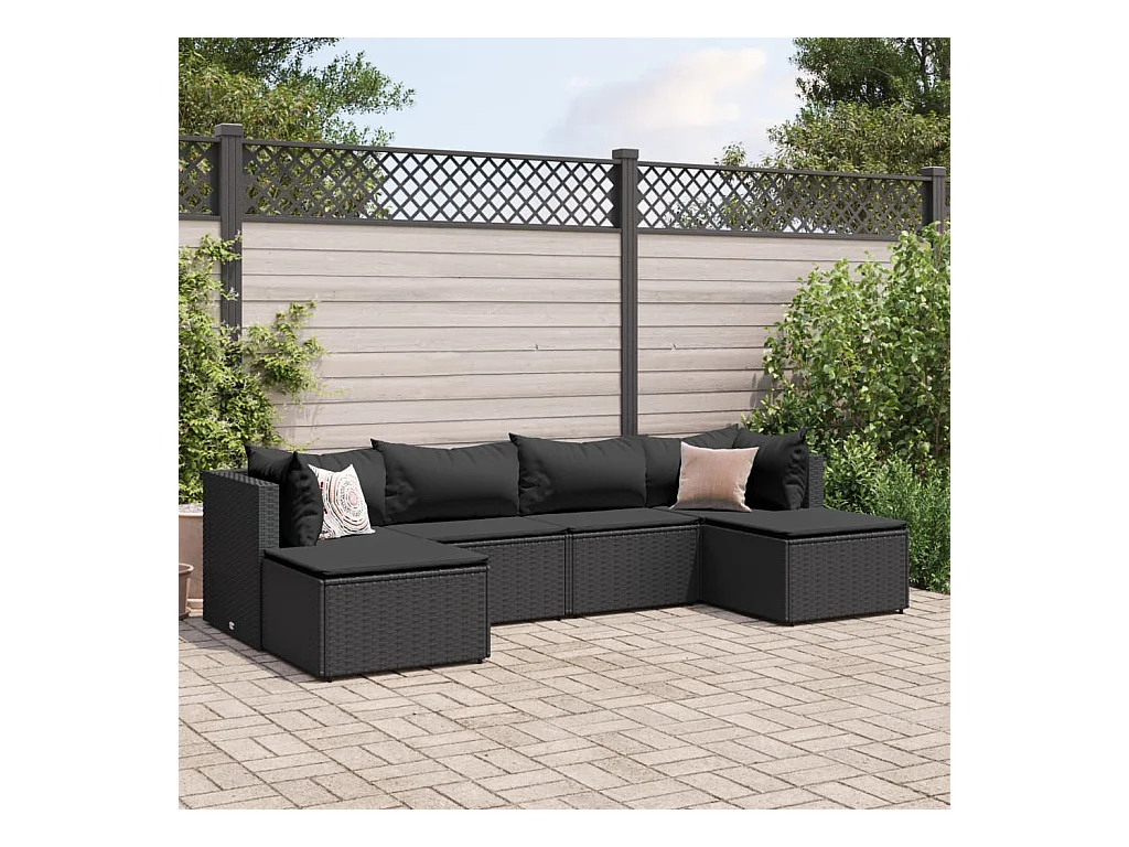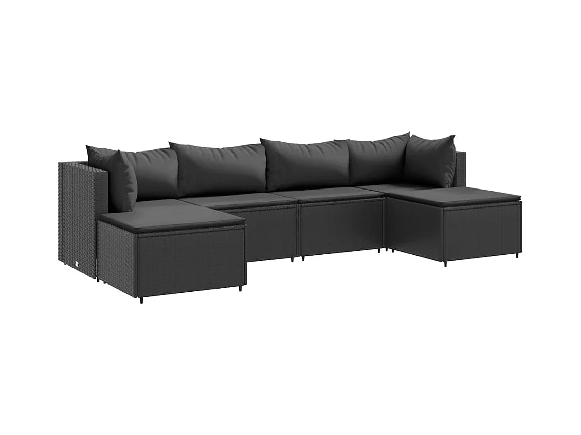 Set Divano da Giardino 6 pz con Cuscini Nero in Polyrattan