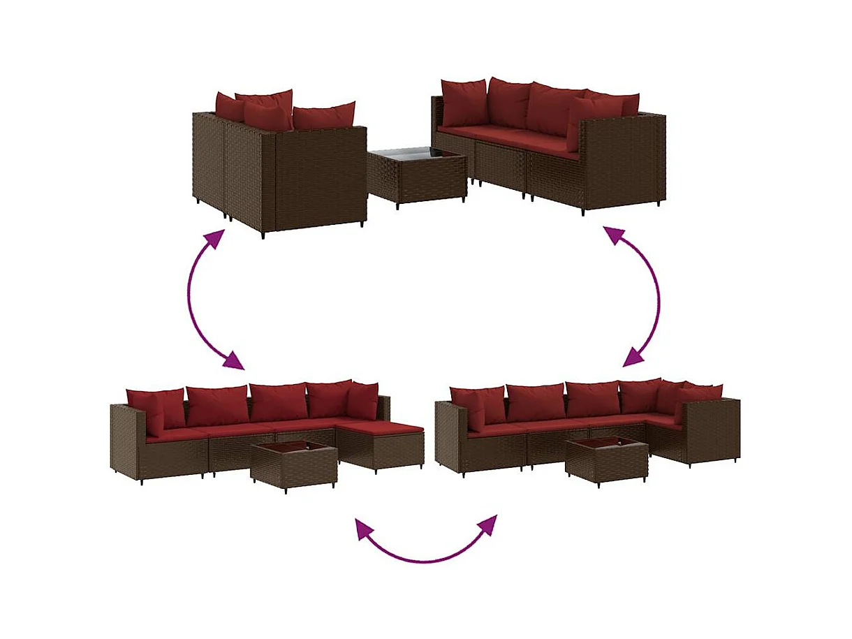 Set Divani da Giardino 8 pz con Cuscini Marrone in Polyrattan