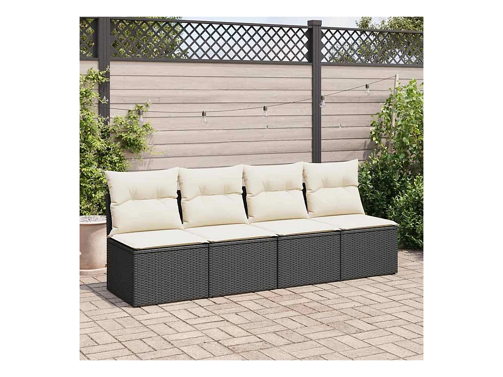 Set di mobili da giardino da 6 pezzi con cuscini neri in resina intrecciata