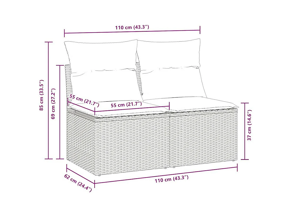 Set mobili da giardino con cuscini 2 pz resina nera vimini acacia