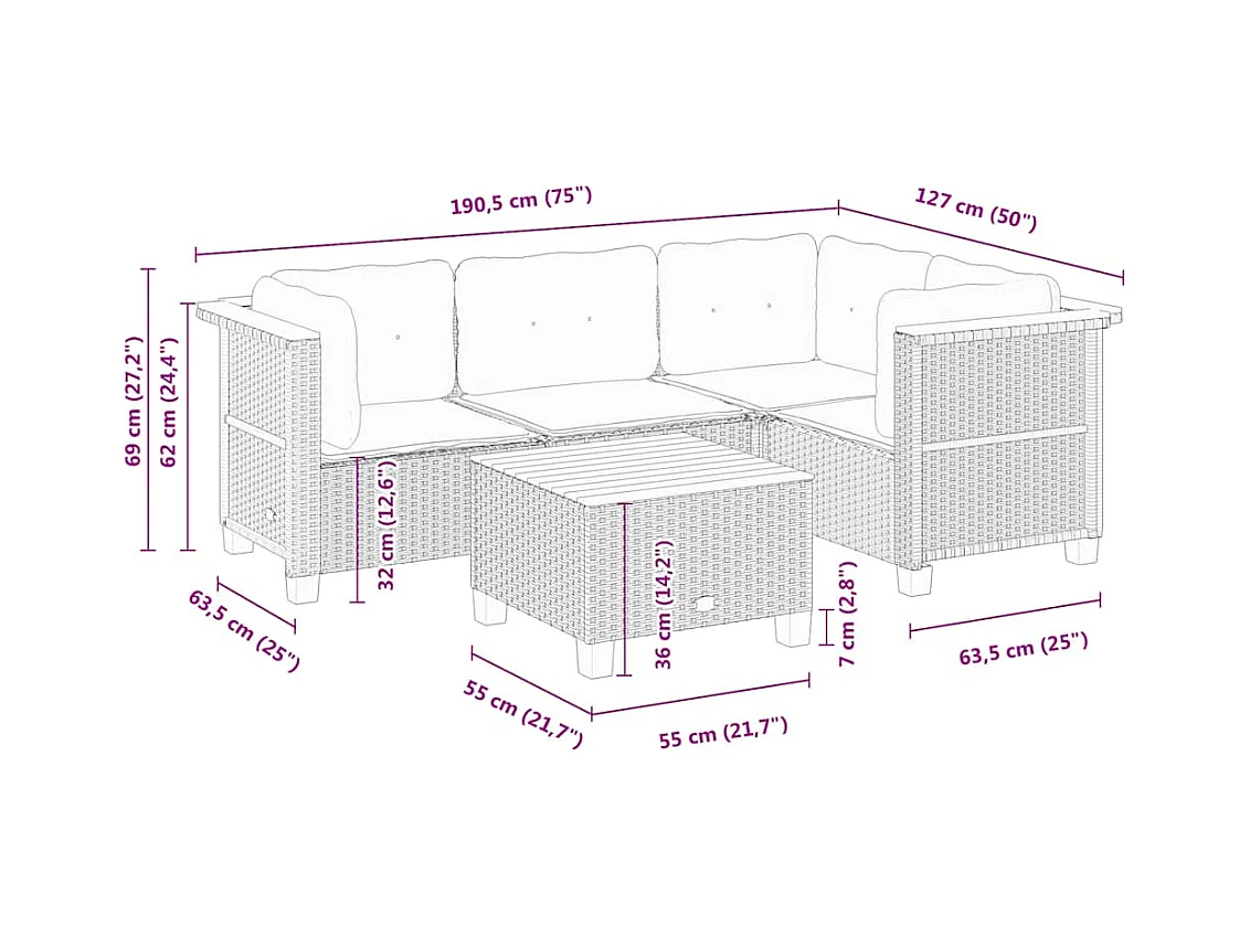 Set mobili da giardino con cuscini 4 pezzi in resina intrecciata beige